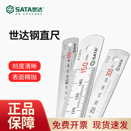 世达钢直尺不锈钢加厚刻度清晰15/30/50/100cm测量木工文具91401