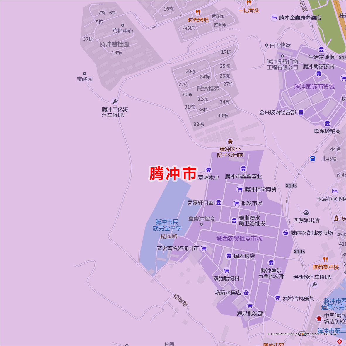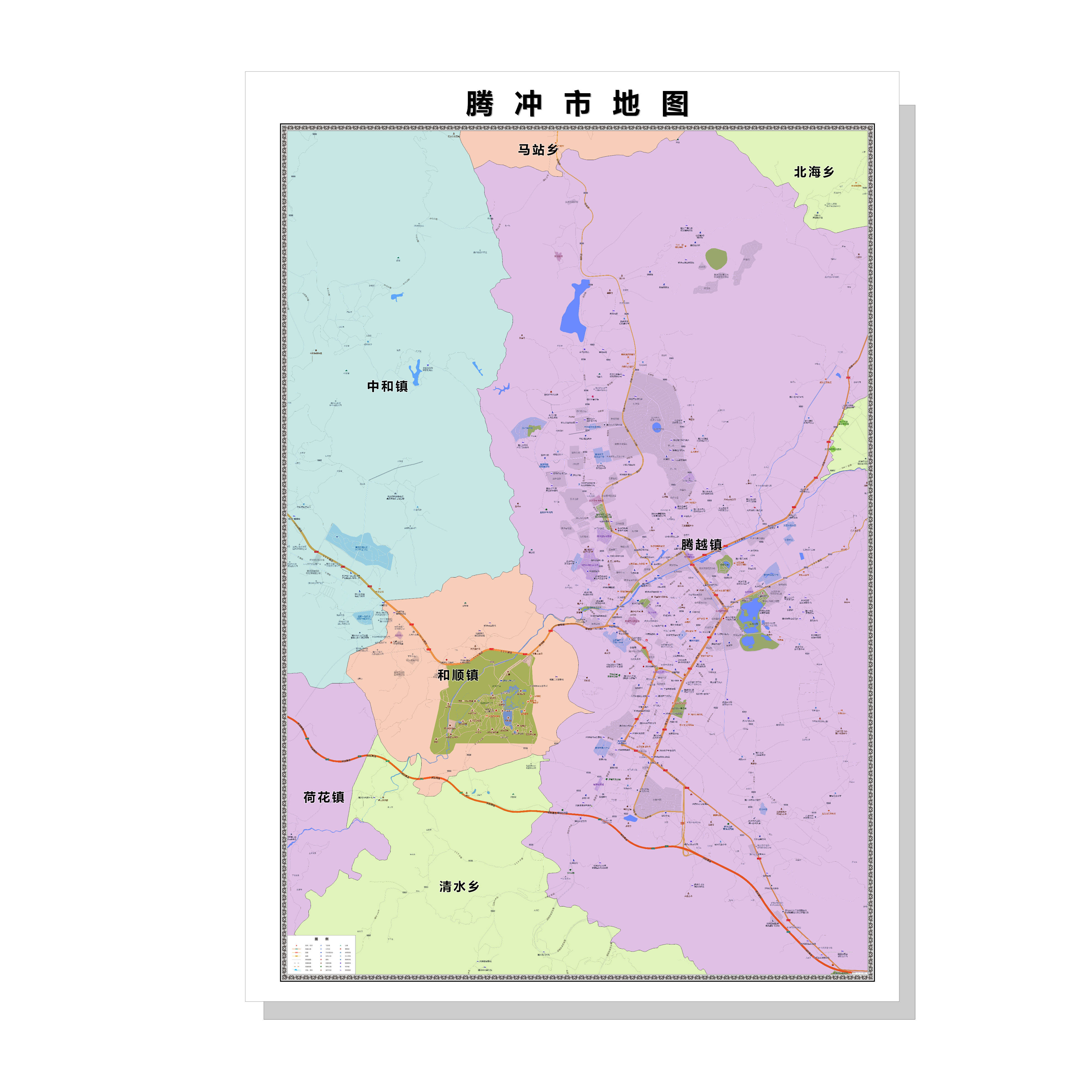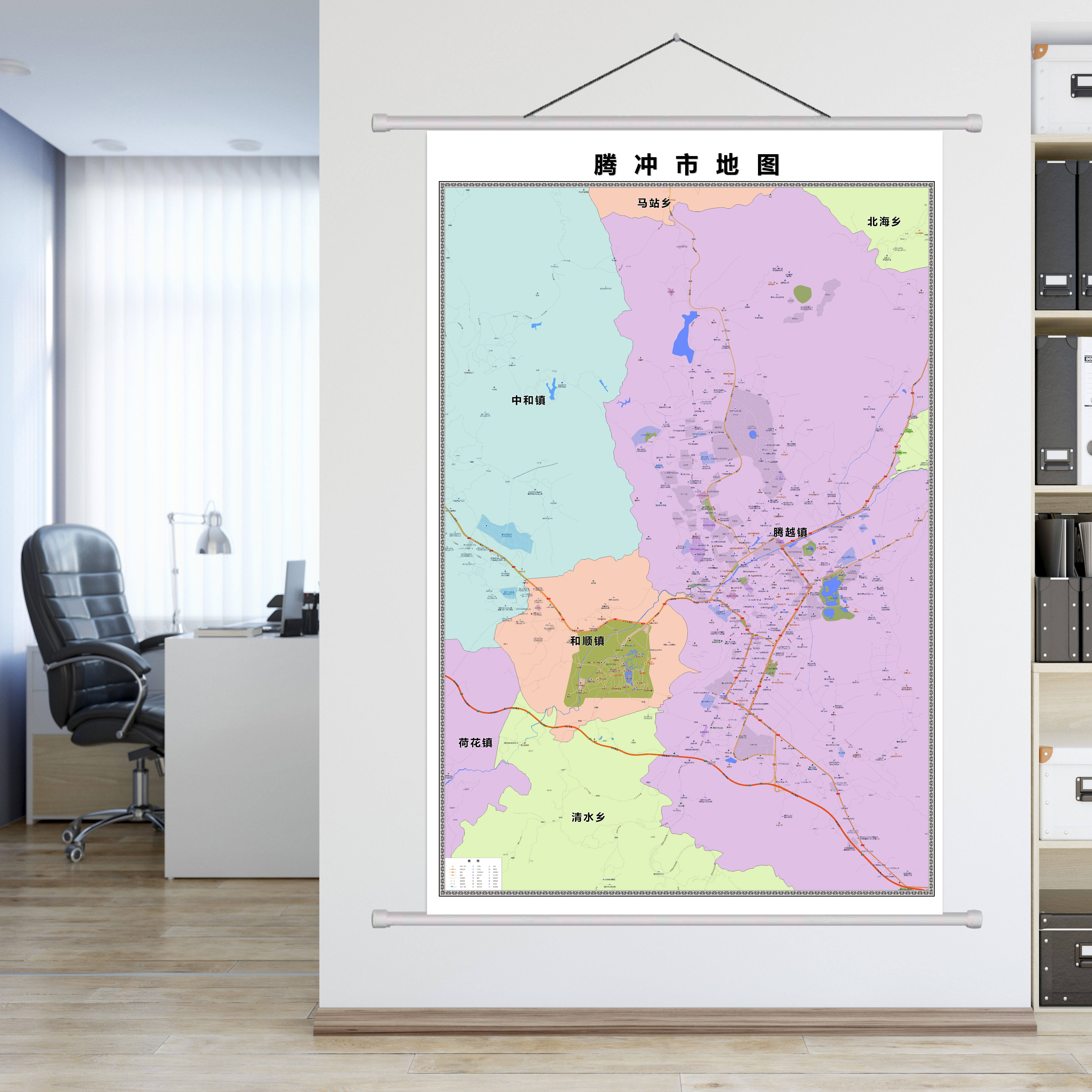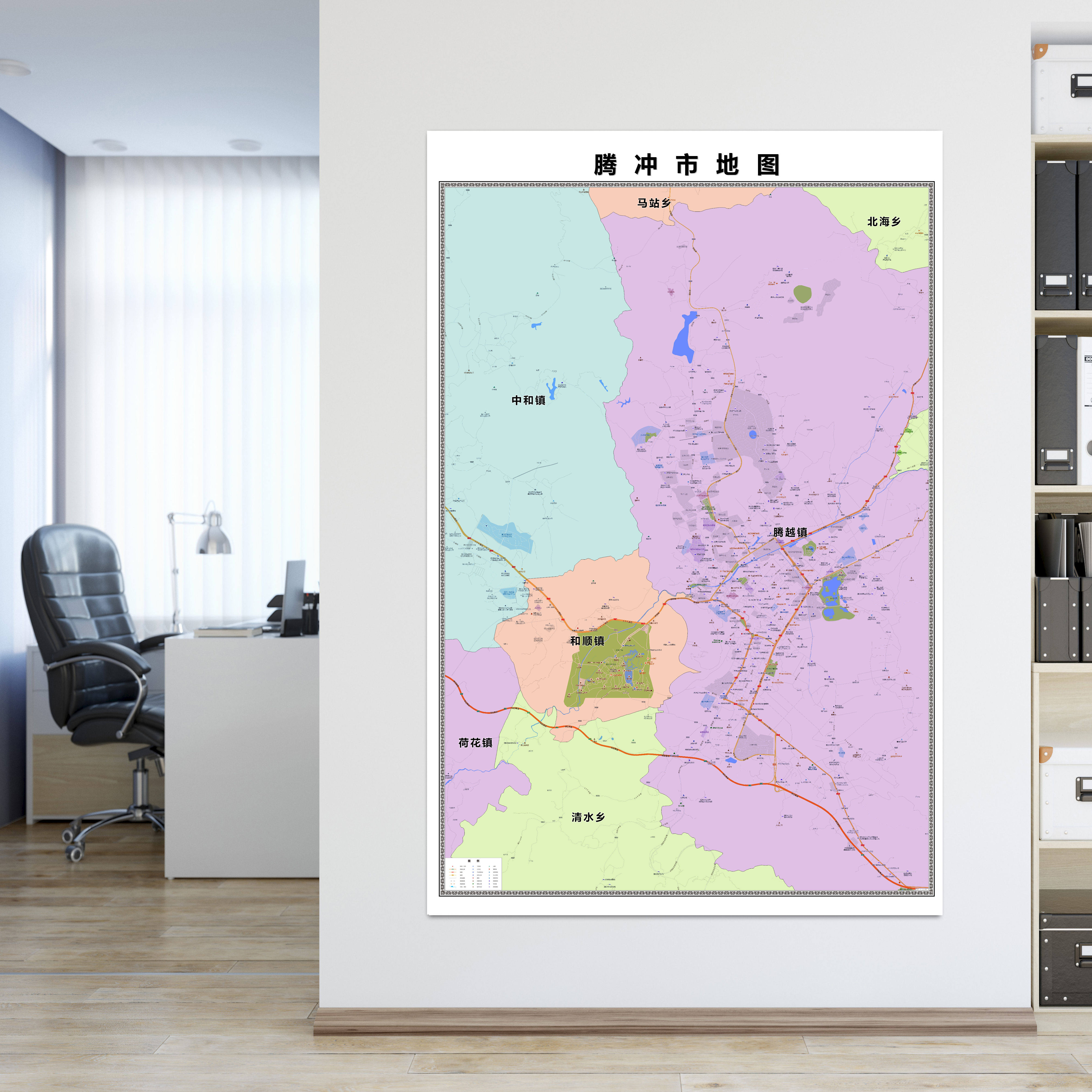 腾冲市城区商圈地区图高清可贴可挂磁性办公会议室书房