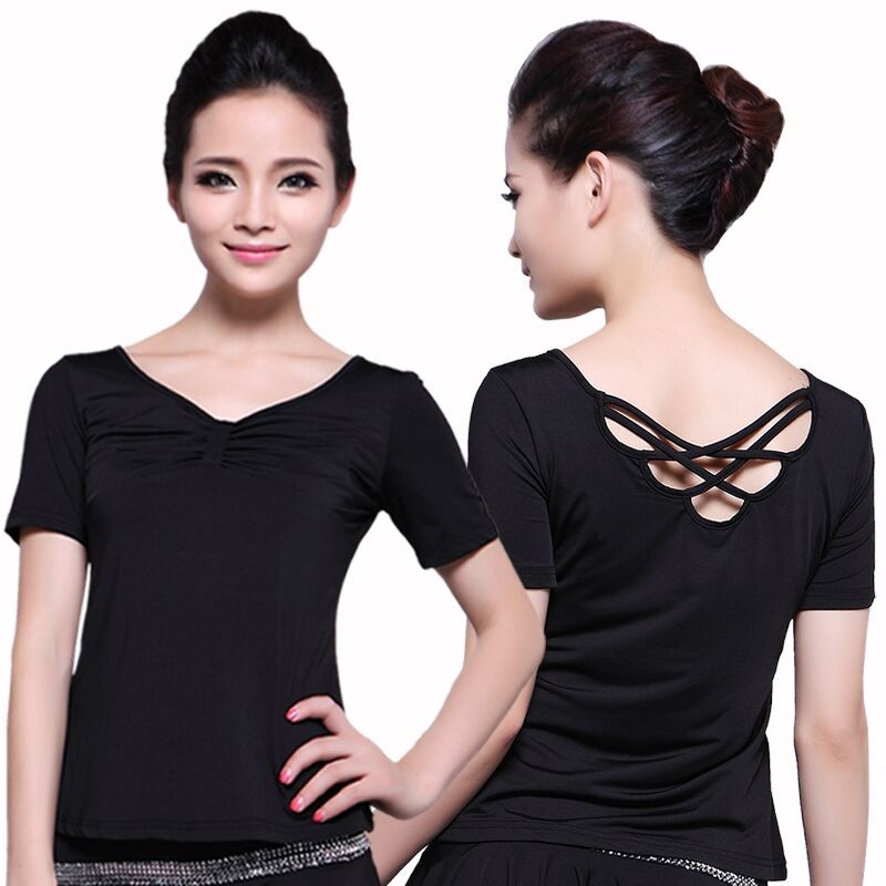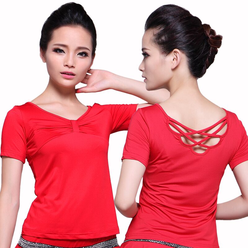2025广场舞服装新款秋冬上衣女成人舞蹈短袖镂空拉丁舞练功服V领