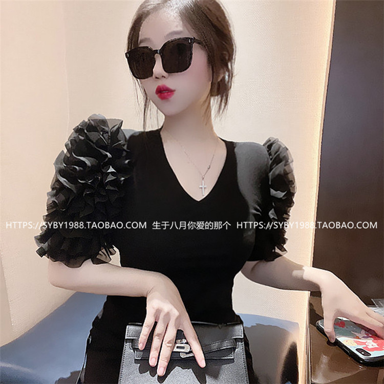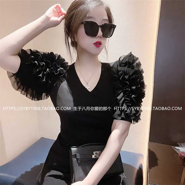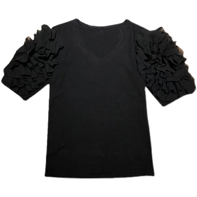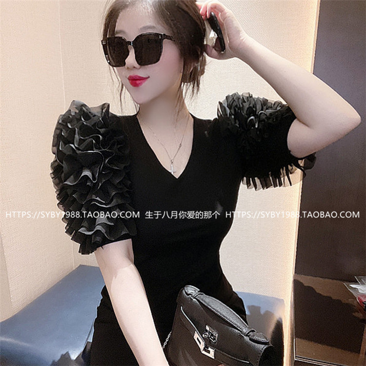 时尚小衫2024夏季新款重荷叶边短袖t恤洋气女装上衣半袖打底衫潮