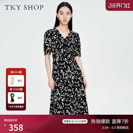 [100%桑蚕丝]TKY SHOP法式真丝连衣裙夏季收腰显瘦气质长裙碎花裙