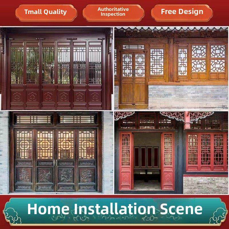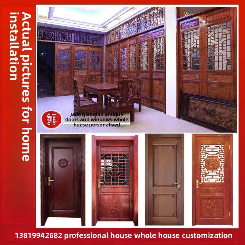 定制新型中国古玩门窗室内折叠门原木实木门室内门套装门房间卧室