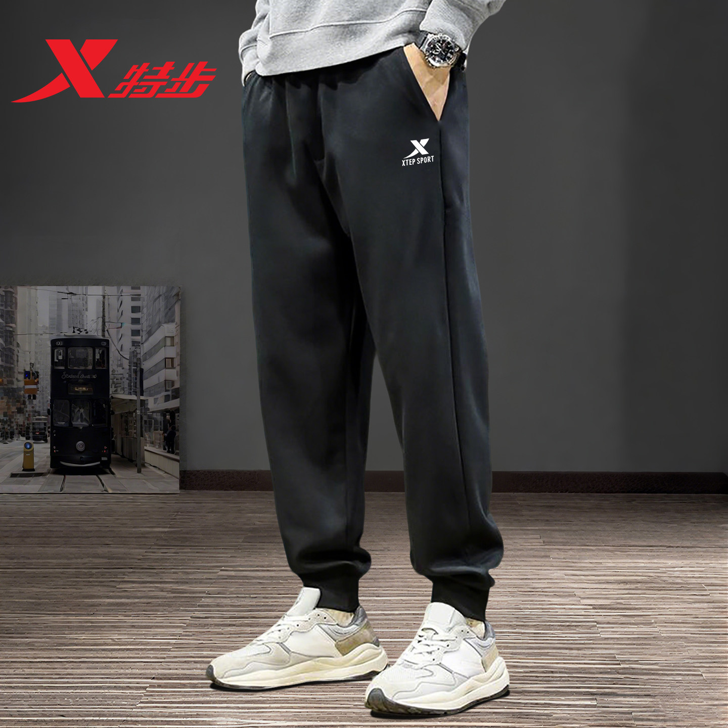 特步运动裤男秋季新款黑色卫裤