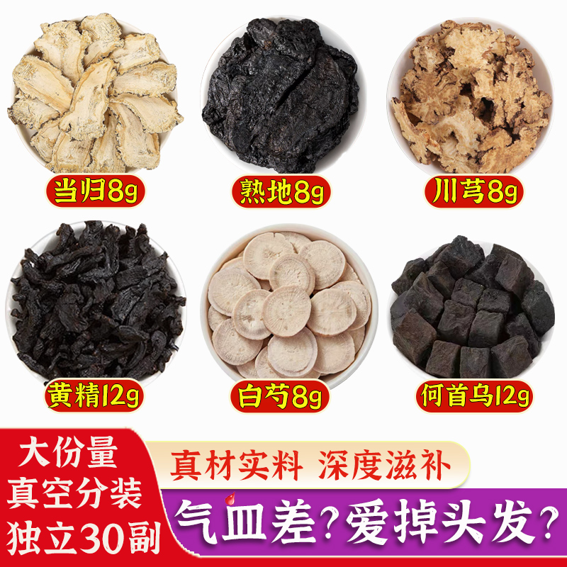 四物汤何首乌当归川芎熟地白芍黄精材料包熬夜虚掉发非桃红四物汤