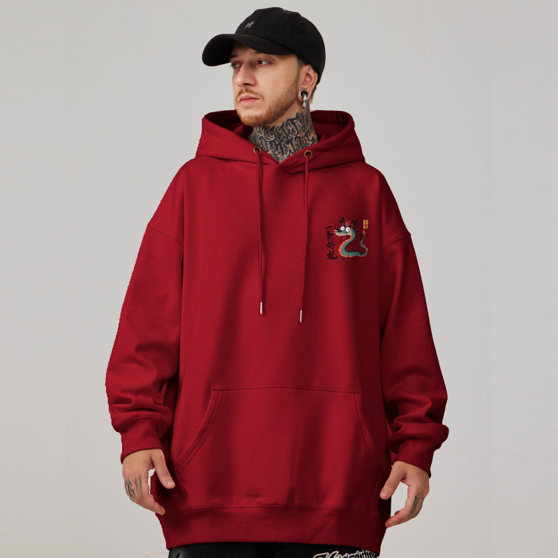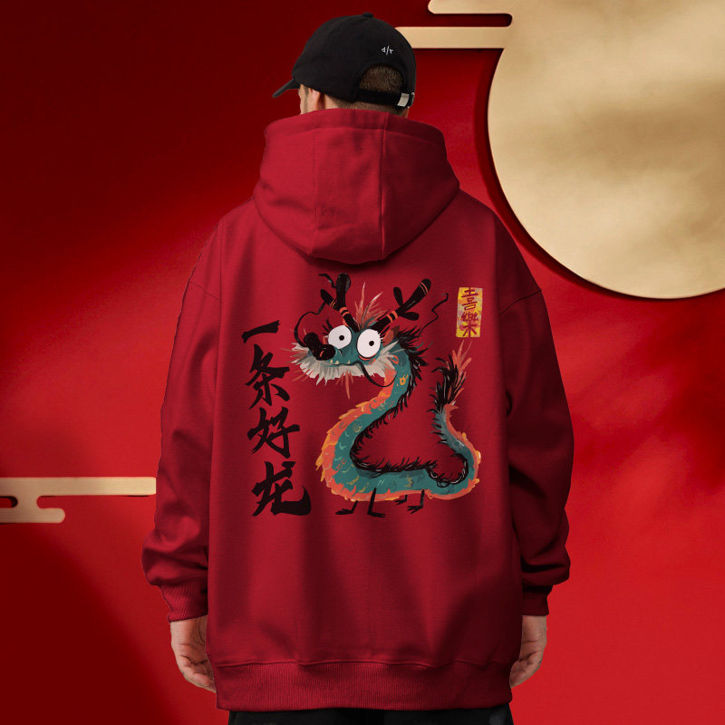 2025新款红色蛇年胖子卫衣连帽宽松加绒加肥加大码男生外套秋冬季