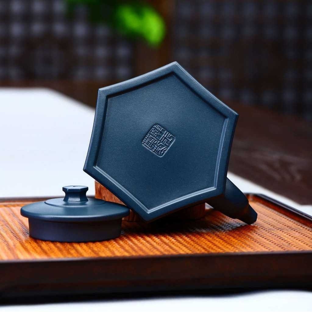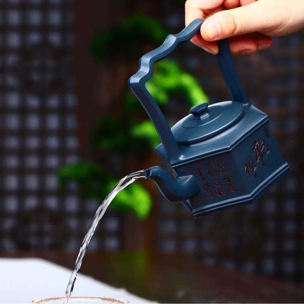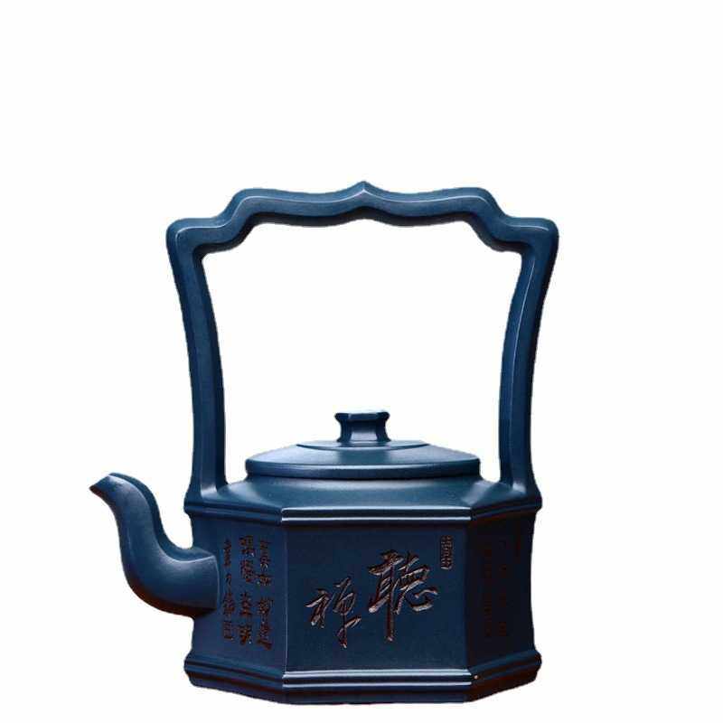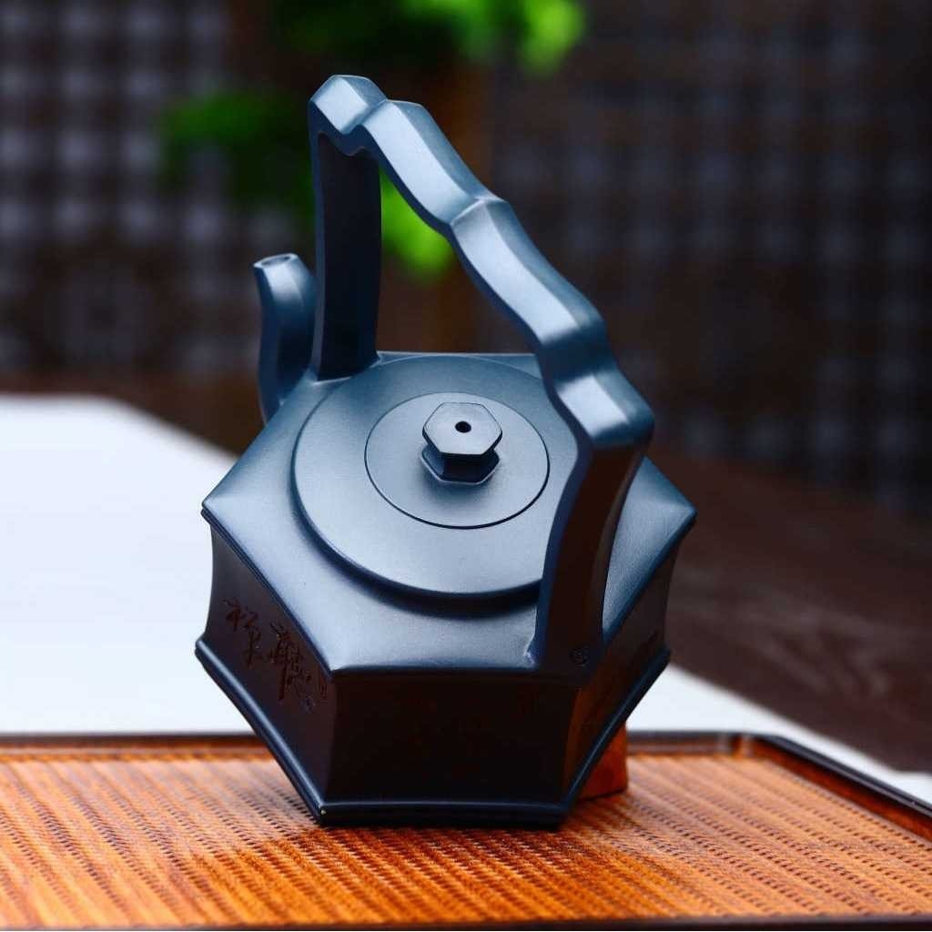 六方提梁壶宜兴紫砂壶茶具茶道文玩茶器名家纯手工刻绘原矿天青泥