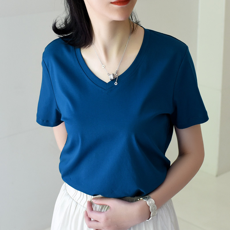 云开80支双面丝光棉新疆棉夏季短袖圆领V领纯棉T恤可机洗直筒女士