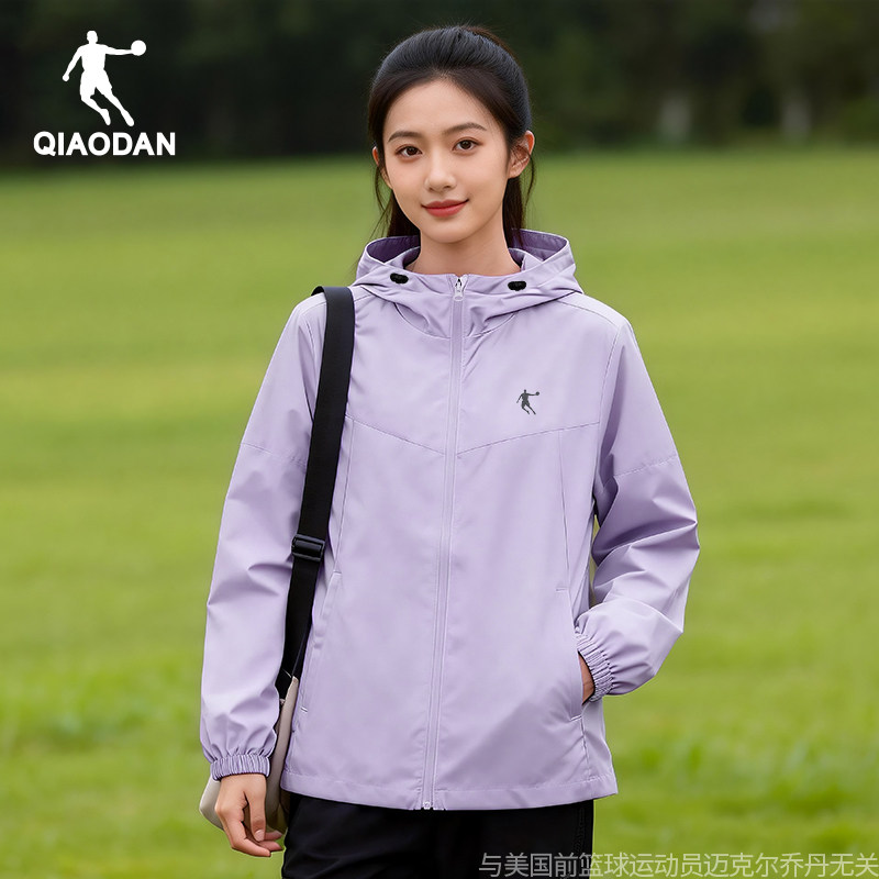 乔丹风衣女2026春季新款连帽立领薄款透气拉链长袖户外防晒服上衣