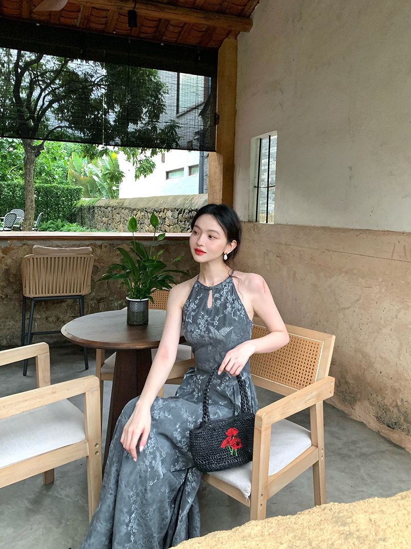 酒午自制新中式挂脖连衣裙女夏