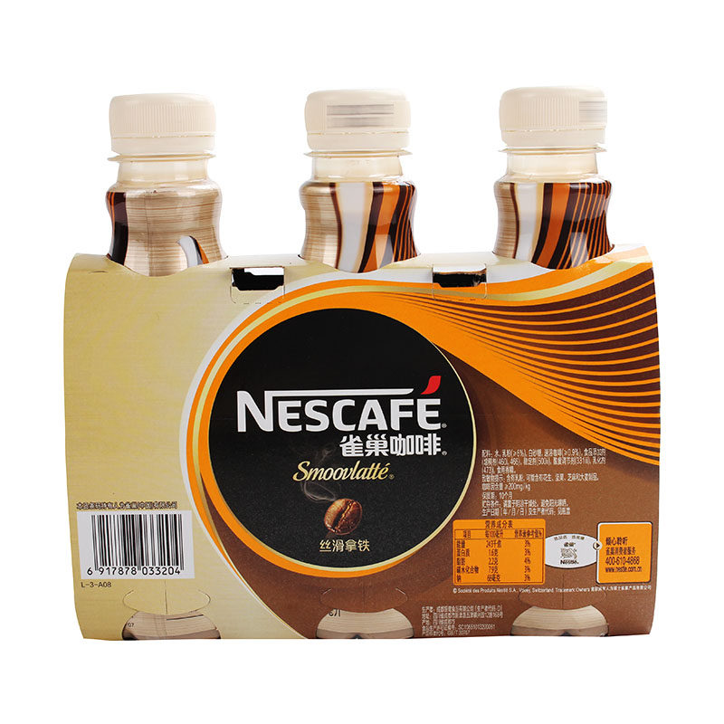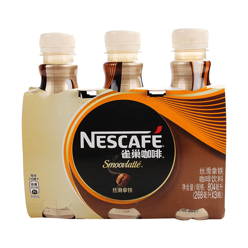 雀巢咖啡咖啡豆白咖啡丝滑拿铁饮料268毫升*3瓶/组