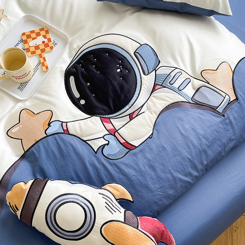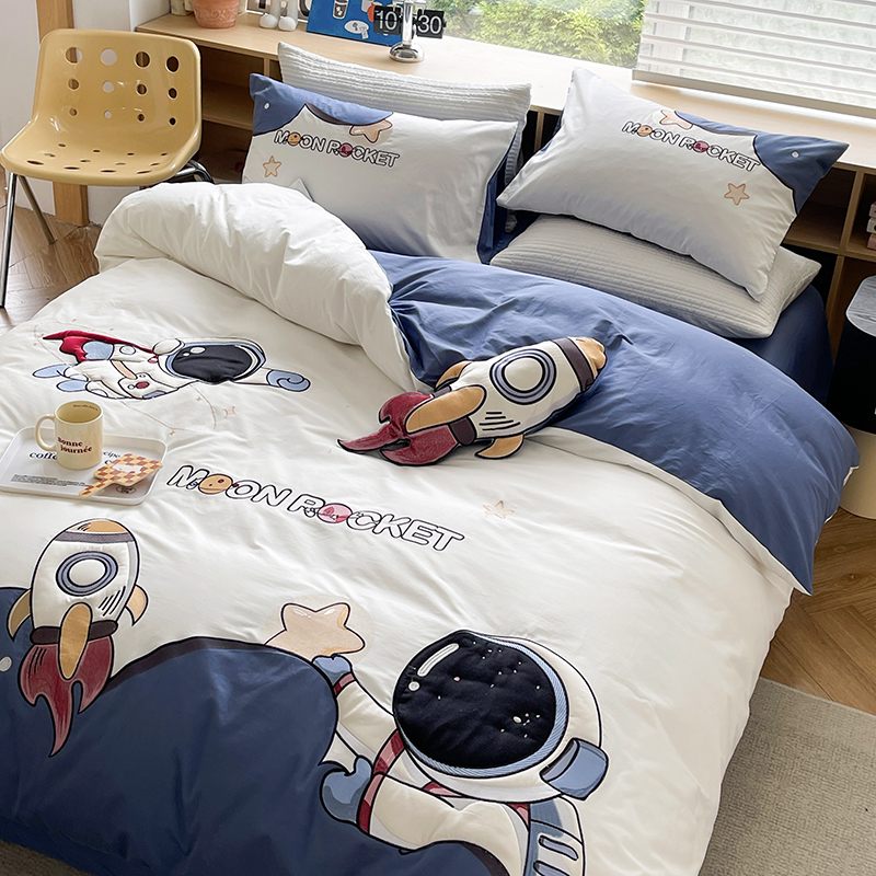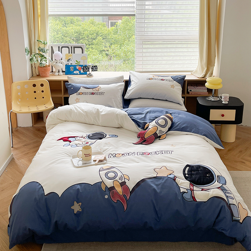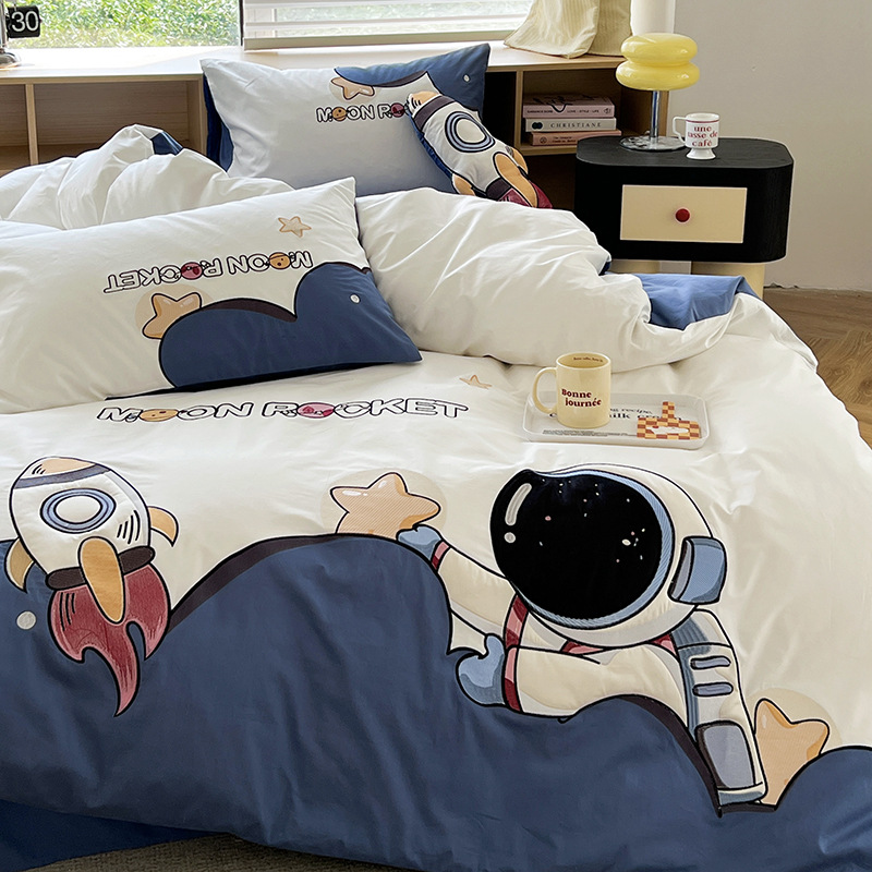 卡通儿童男孩床品100支全棉长绒棉四件套纯棉宇航员被套1.2三件套