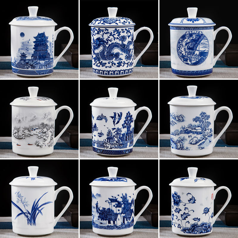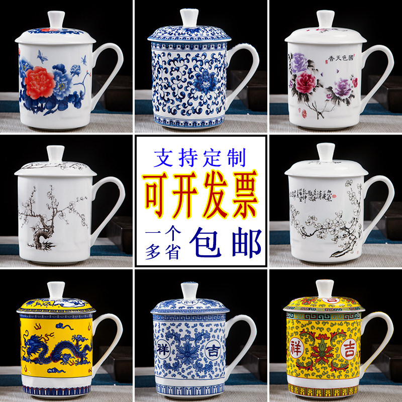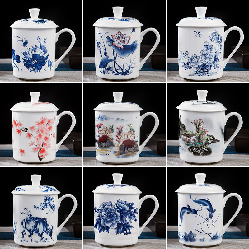 定制陶瓷杯茶杯景德镇青花瓷杯子家用水杯带盖办公室会议杯骨瓷杯