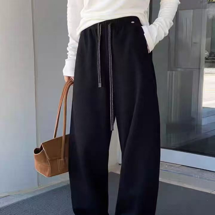 leaf秋季羊绒裤韩版百搭简约高腰显瘦卫裤女休闲运动阔腿裤9637