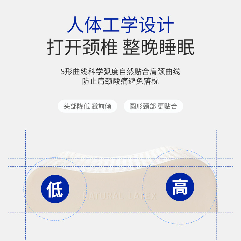 泰国乳胶枕头高枕加厚加高天然橡胶枕芯护颈椎睡眠枕睡觉成人专用