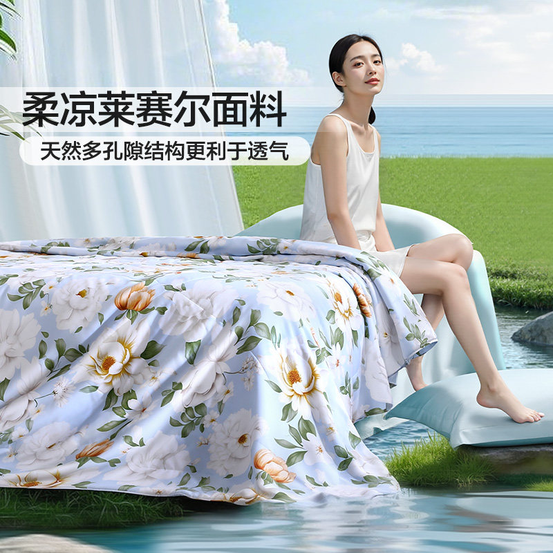 富安娜蚕丝被天丝莱赛尔夏被空调被子春秋被夏季夏凉被可水洗被芯