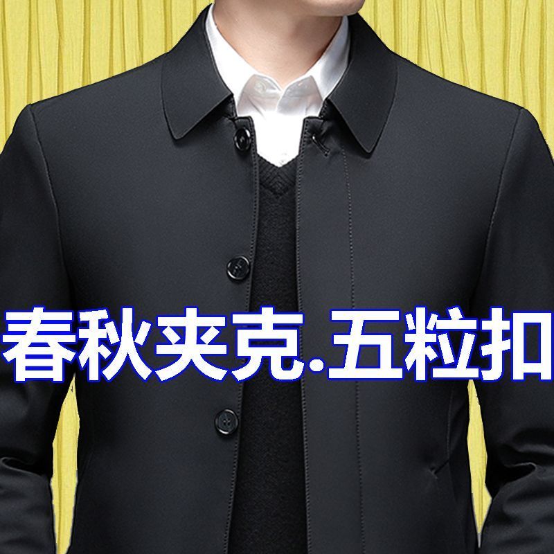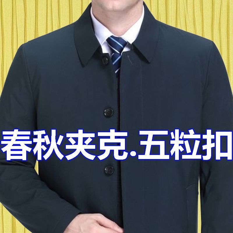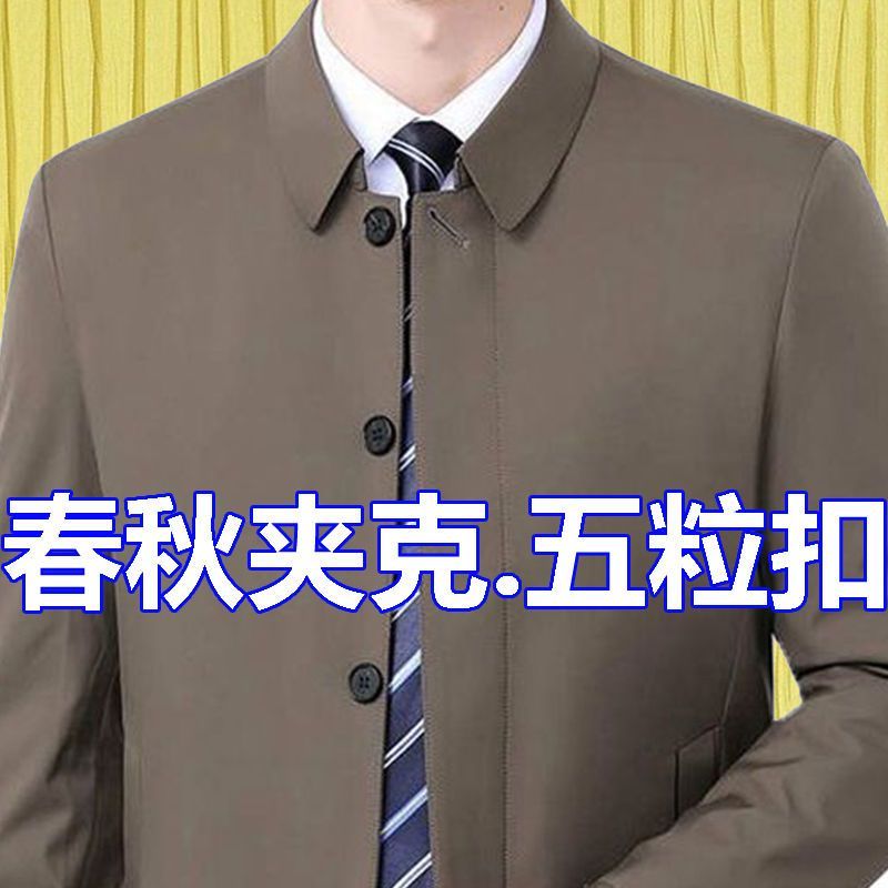 新款五粒纽扣行政夹克男士外套春秋薄款外套中年男式爸爸领导男装
