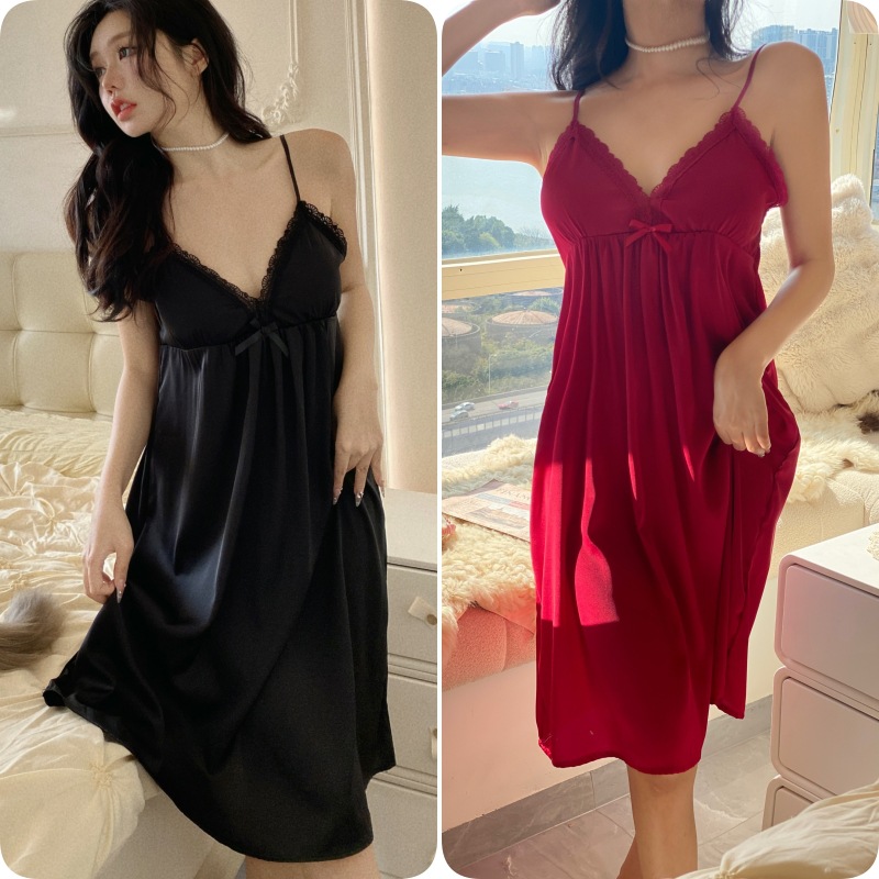 夏季性感睡衣女公主风吊带睡裙中长款缎面冰丝带胸垫高级感家居服