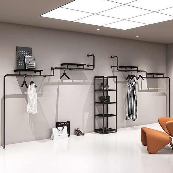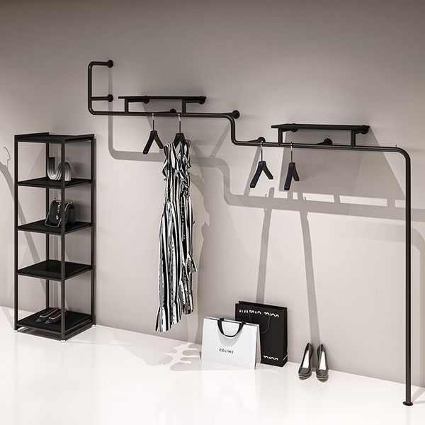 服装店架子上墙货架简约铁艺黑色多层挂衣架专用女装店衣服展示架