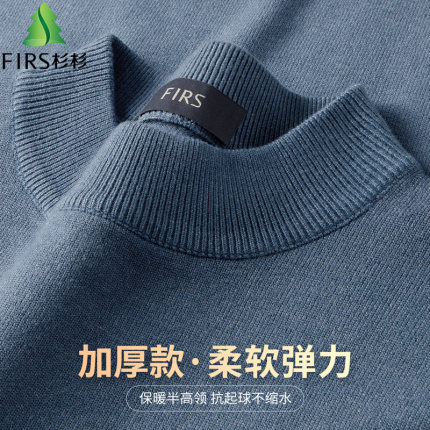 杉杉重磅加厚保暖可机洗秋冬装不易起球纯色半高领毛衣男士针织衫