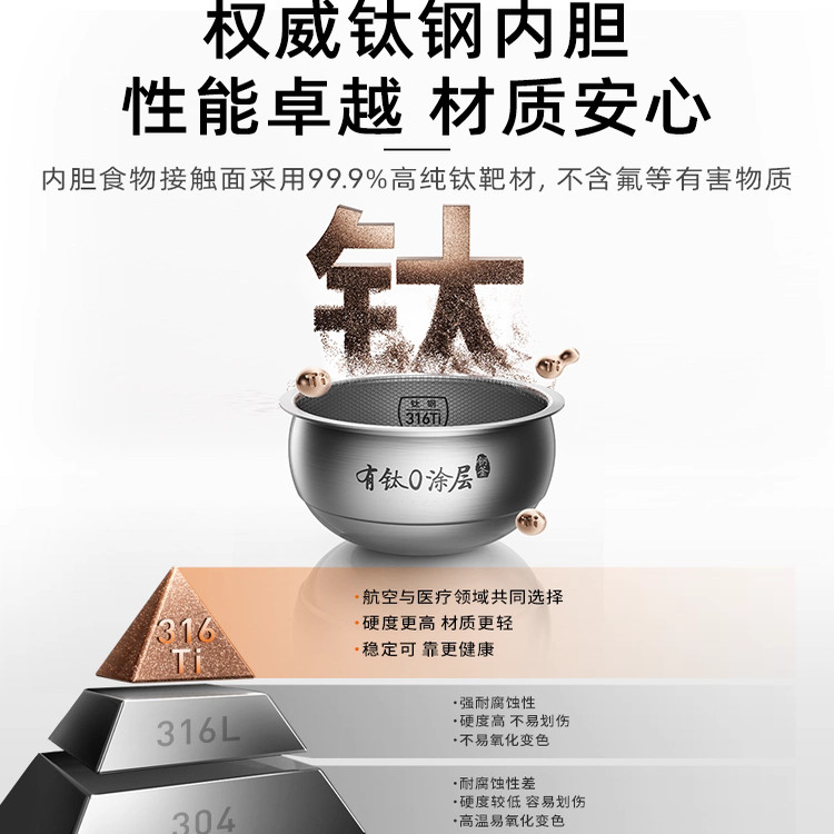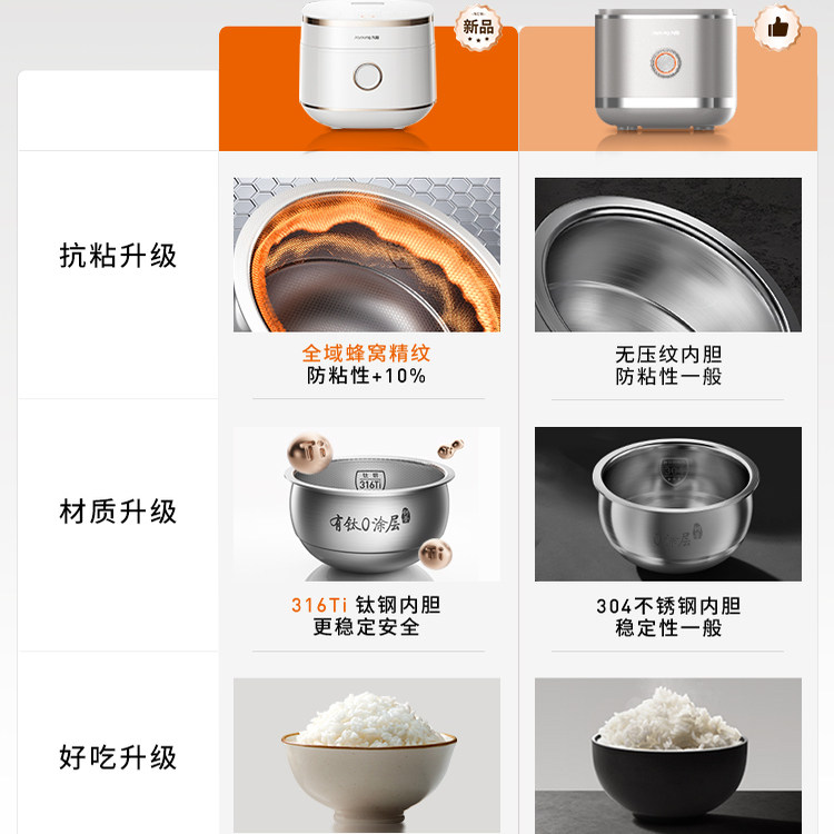 九阳0涂层全域蜂窝有钛电饭煲316Ti内胆4升远红外电饭锅新款40N1F