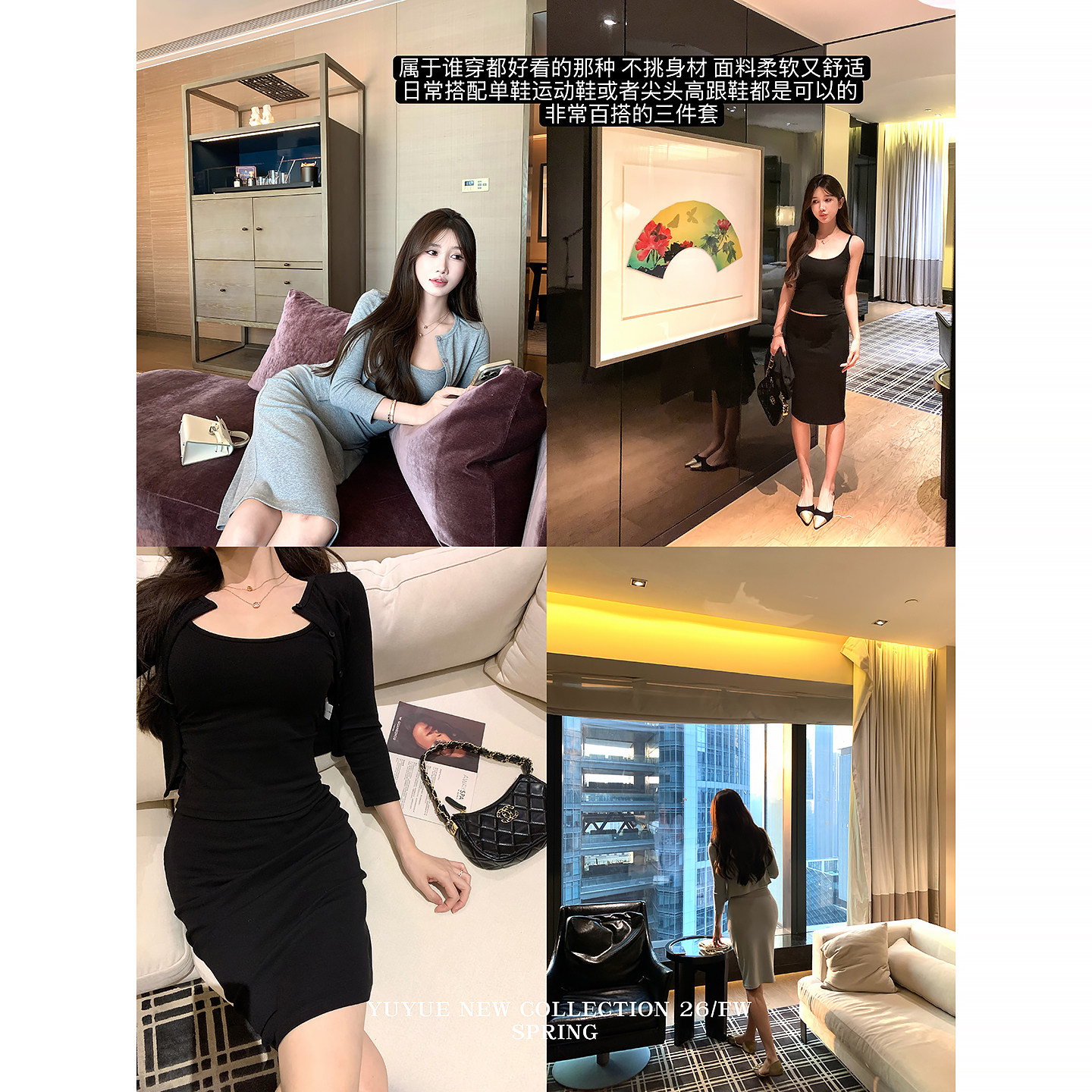 愉悦喻悦 七分袖短款开衫性感吊带背心女春季包臀中长款半裙套装