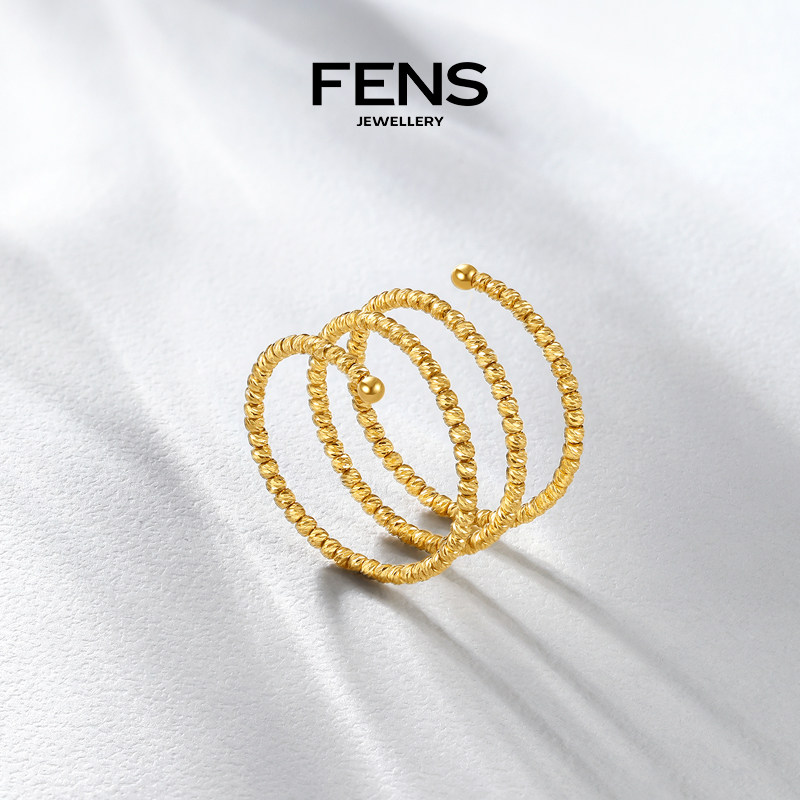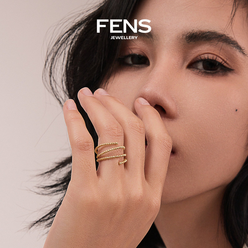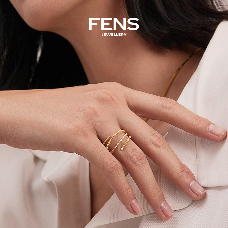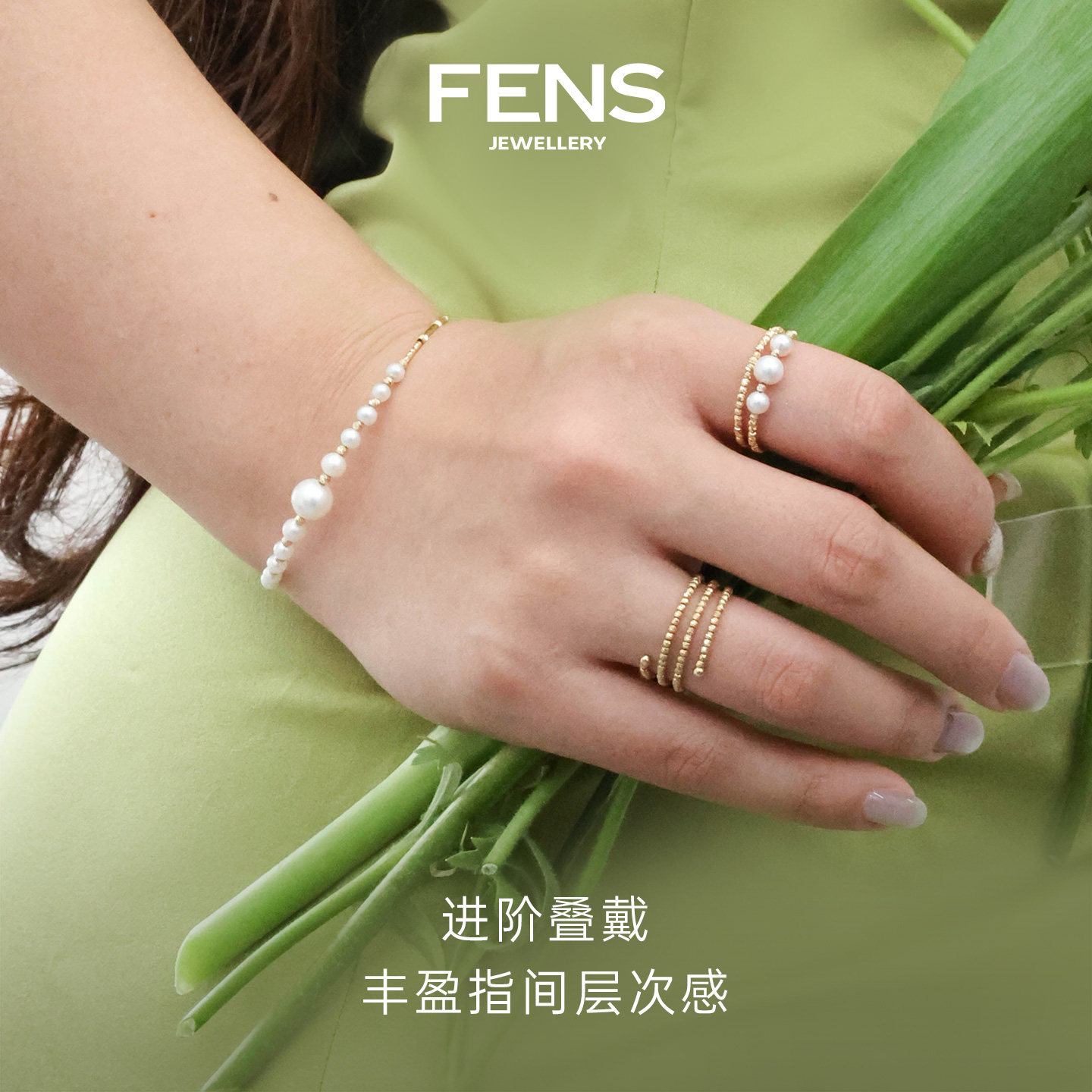 【新年礼物】FENS珠宝 18K金戒指女小众弹簧珠珠指环叠戴饰品
