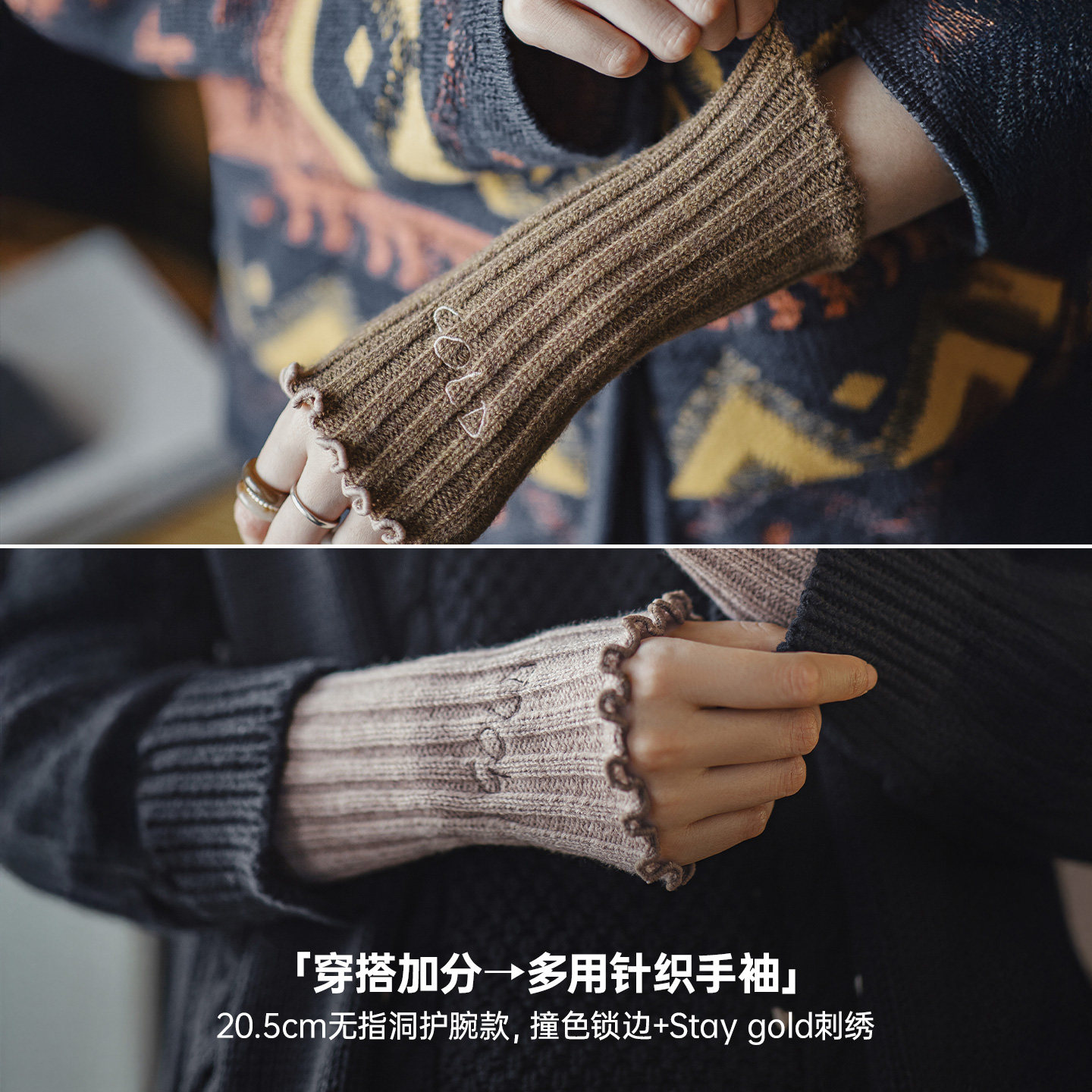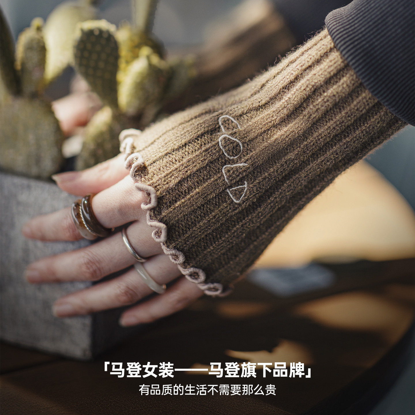 马登无指毛线手套加厚保暖露趾长款手臂袖套针织假袖子女士秋冬季