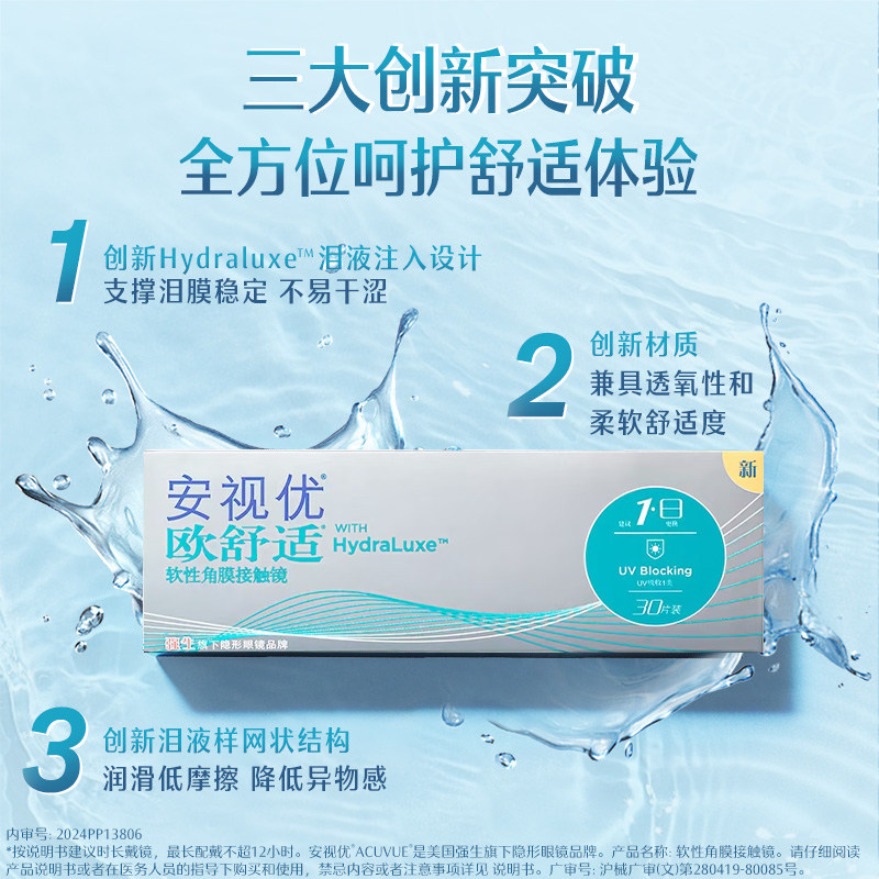 强生安视优欧舒适日抛隐形眼镜硅水凝胶近视透明正品进口ACUVUE