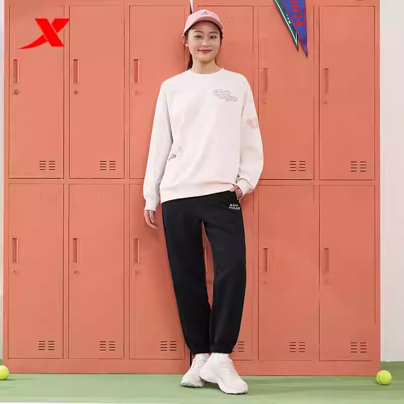特步运动长裤女2024秋季新款撞色宽松休闲女裤运动裤976128630006