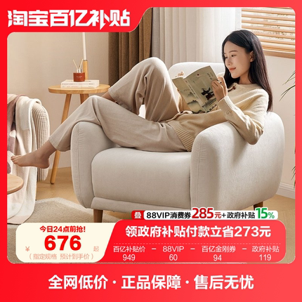 全友家居布艺沙发小户型卧室阳台客厅现代简约实木脚休闲单人沙发