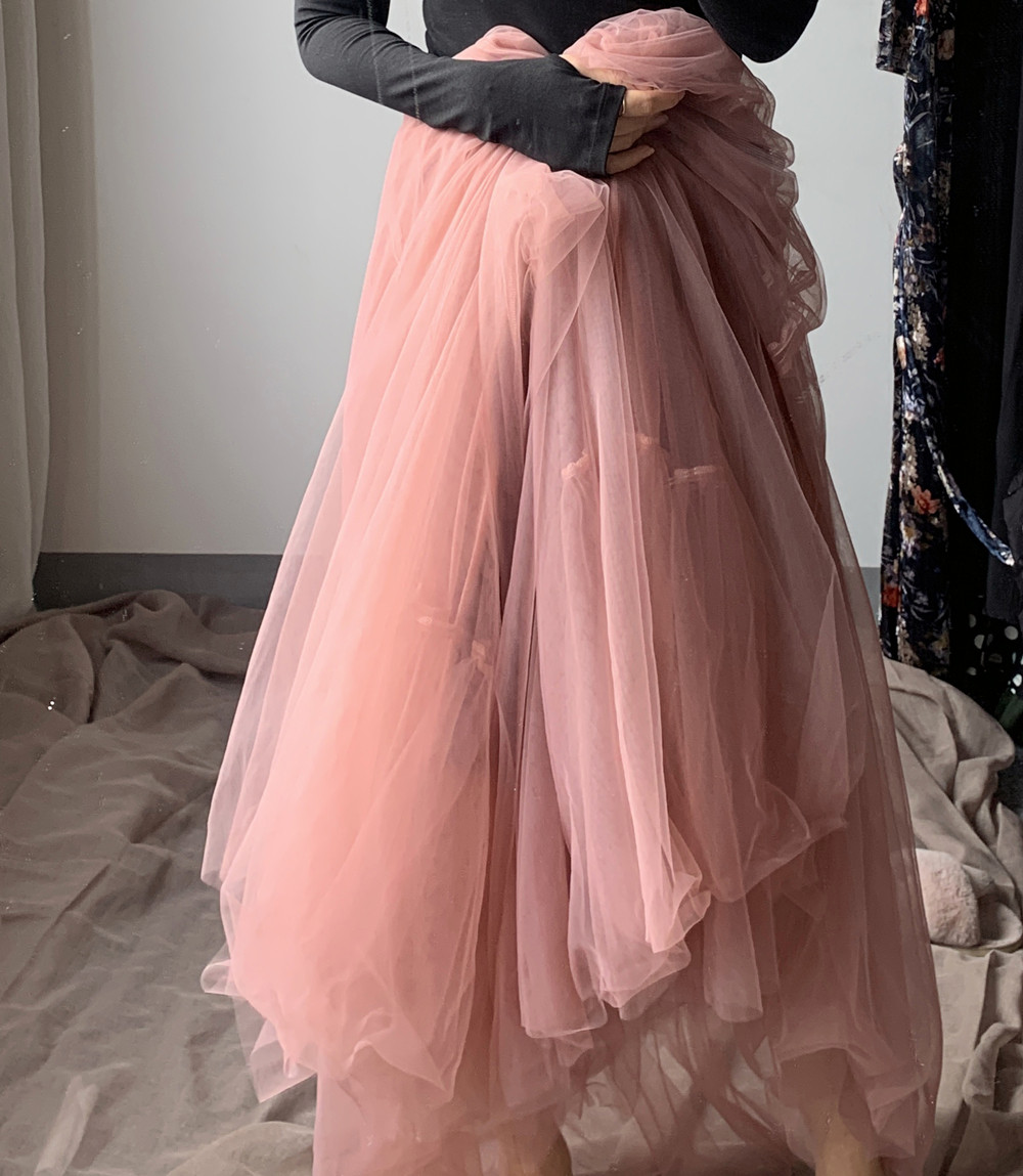 不规则超仙雪纺网纱裙2024女春夏款及踝拖地长裙子纱裙百褶半身裙