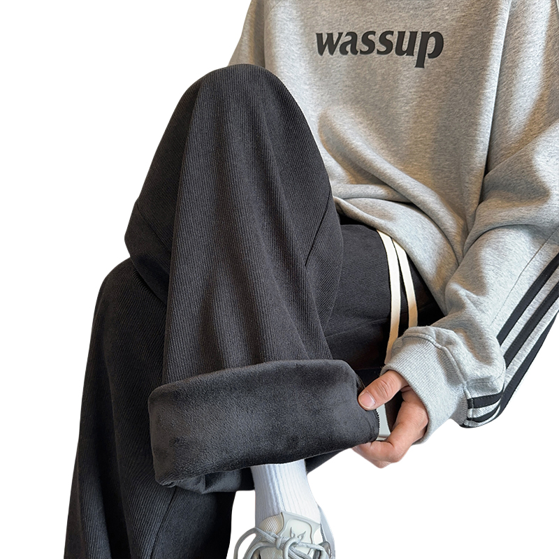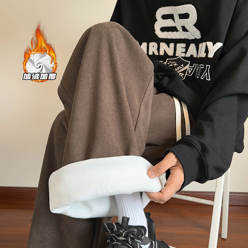 灯芯绒裤子男秋冬季新款高级感oversize运动卫裤纯色加绒直筒长裤