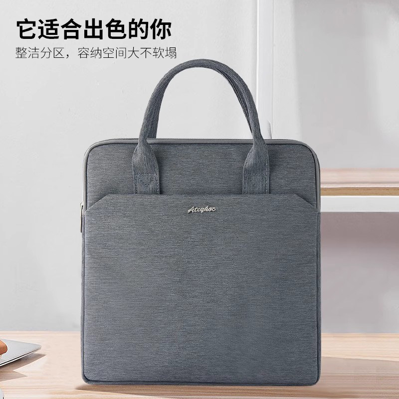 杰利公文包男款手提包文件袋公务员包商务电脑包女士高级感帆布政府大容量拉链袋通勤会议出差公务包定制logo