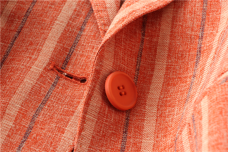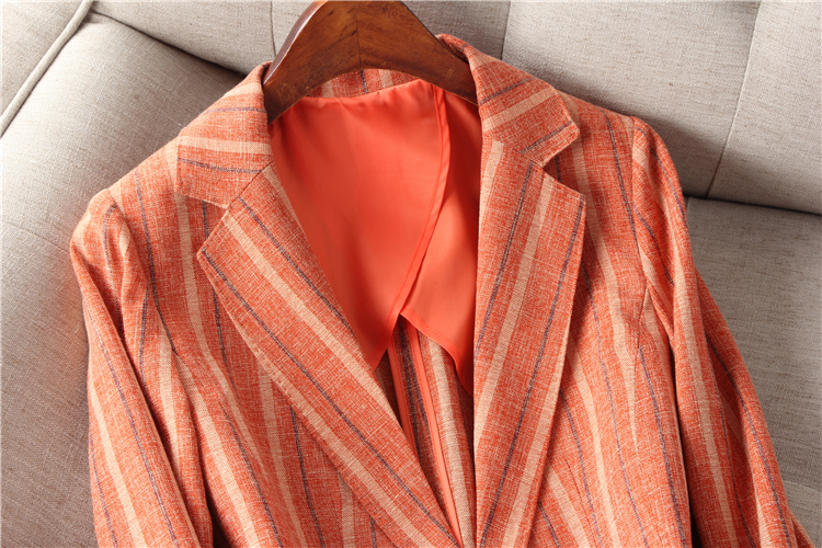 复古腔调~显白洋气时髦桔色条纹修身显瘦七分袖一粒扣西装外套女