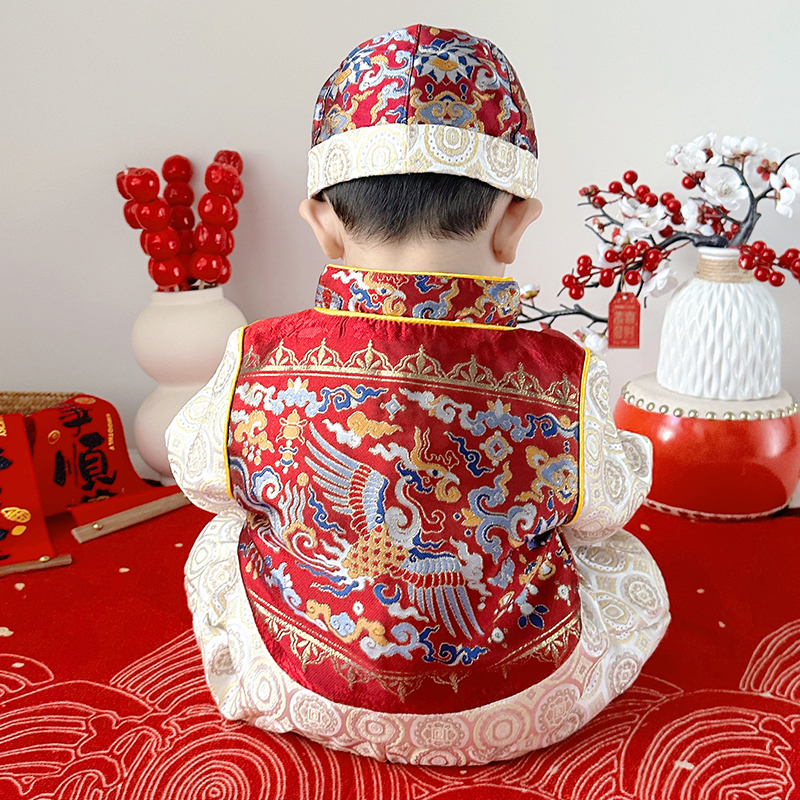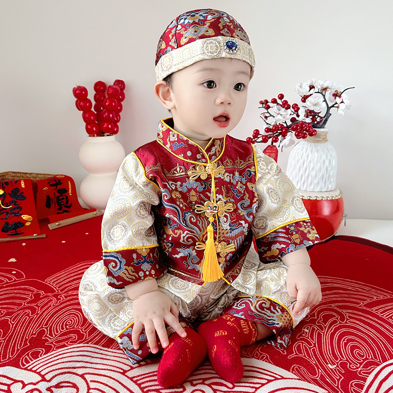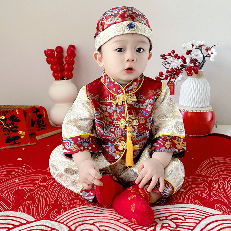 周岁礼服男宝宝抓周衣服秋季中式分体唐装婴儿百天拍照套装