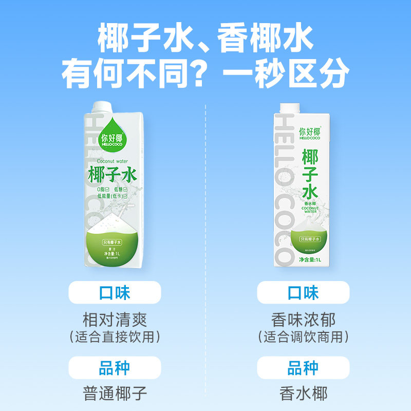 你好椰椰子水1L大瓶网红新鲜健身运动补充电解质饮料植物椰青果汁