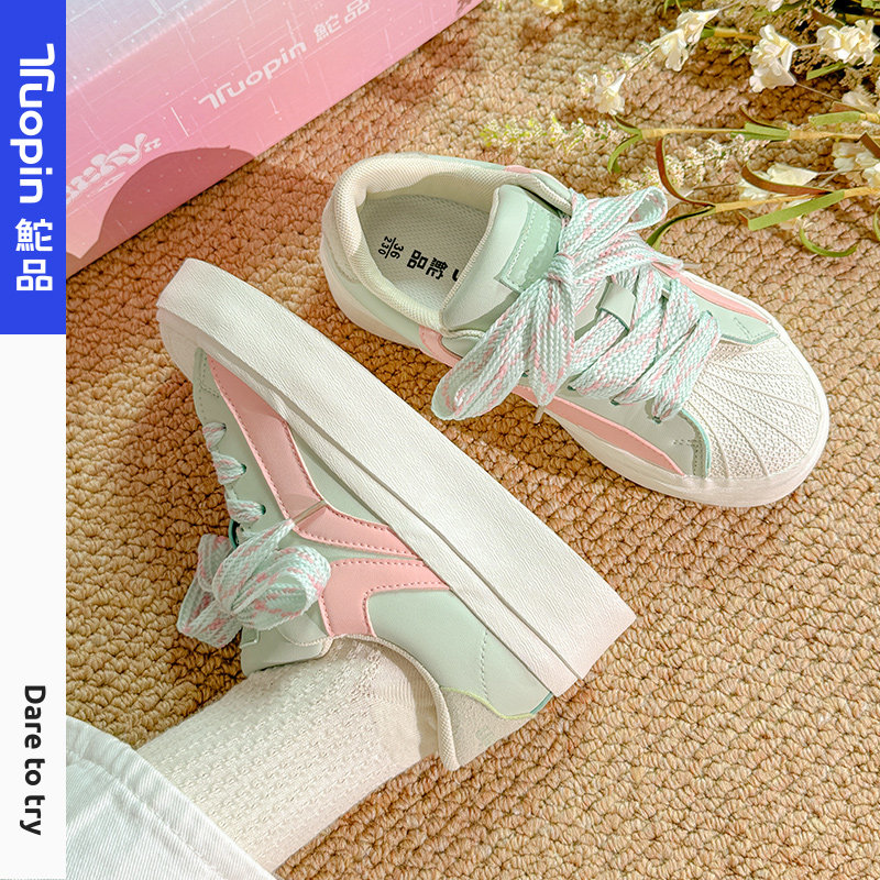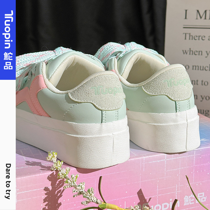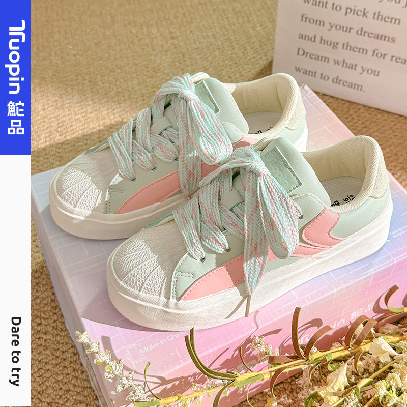 鮀品原创薄荷绿板鞋女2026春季小众百搭厚底贝壳鞋子女休闲运动鞋