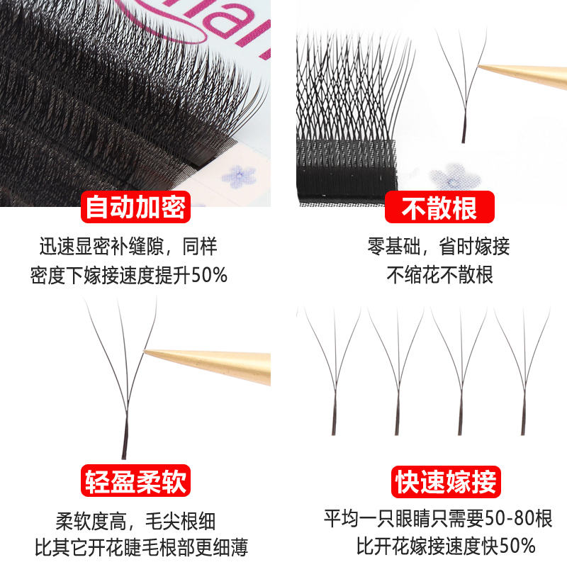 恋夫人0.05三叶草嫁接睫毛软毛美睫店专用Y型混合装开花yy假睫毛
