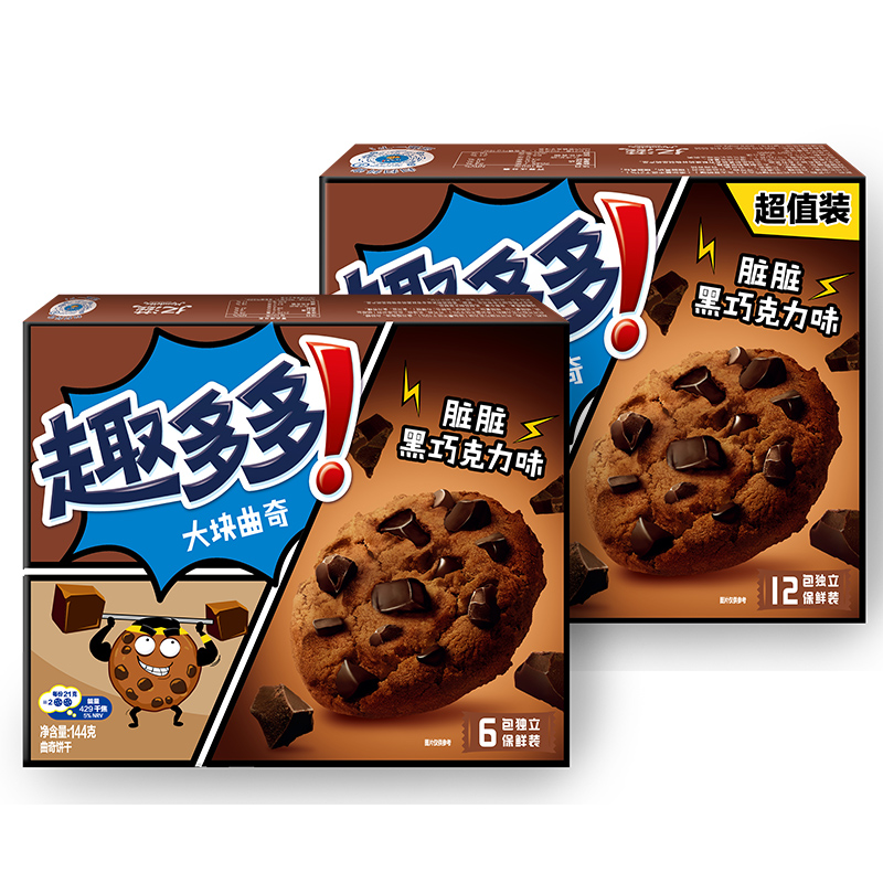 趣多多大块脏脏曲奇饼干黑巧克力味144g/288g盒装儿童休闲小零食