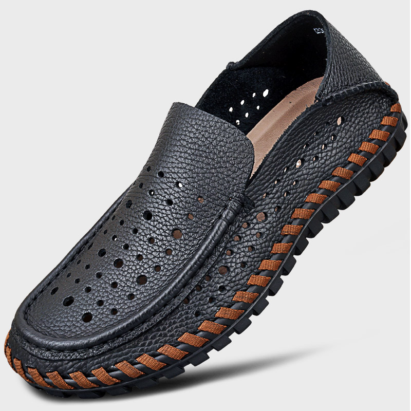 手工加宽头肥厚宽脚胖子夏季镂空皮鞋真皮透气网眼洞洞鞋男士凉鞋