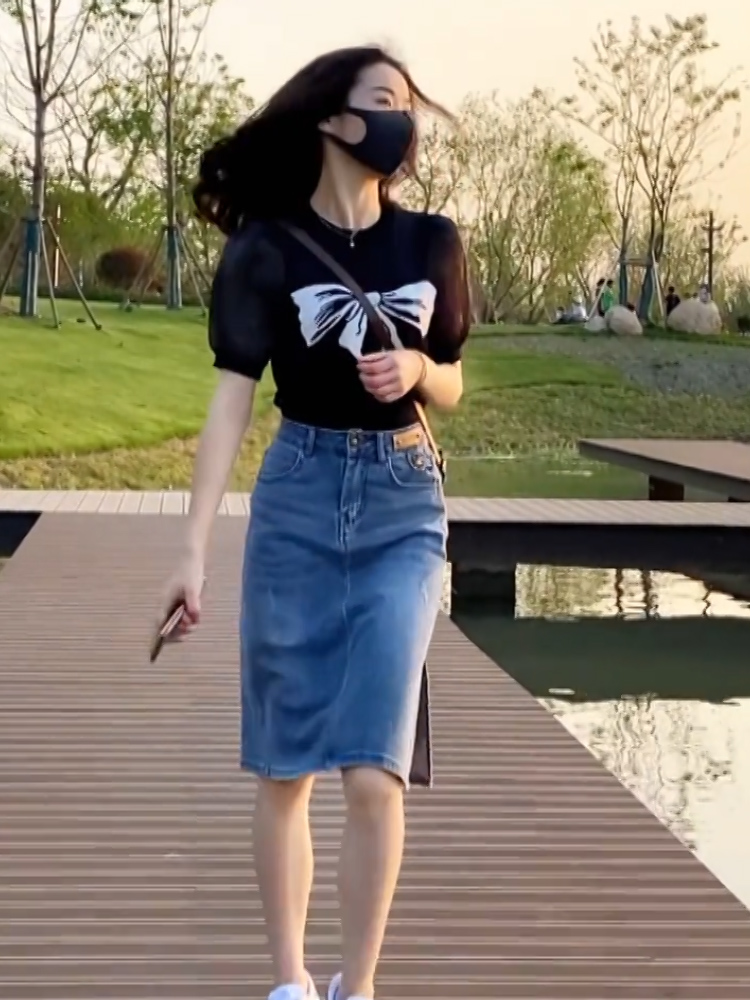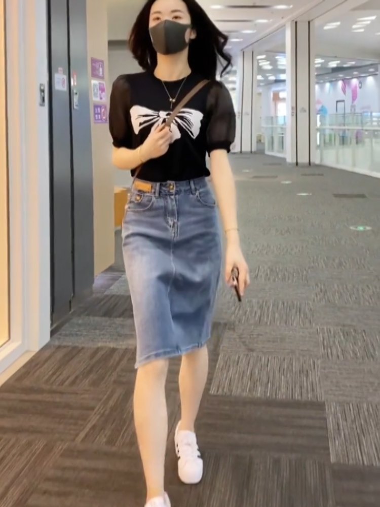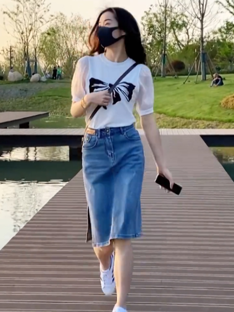 时尚牛仔半身裙套装女夏短袖显瘦休闲梨型身材成套搭配减龄两件套