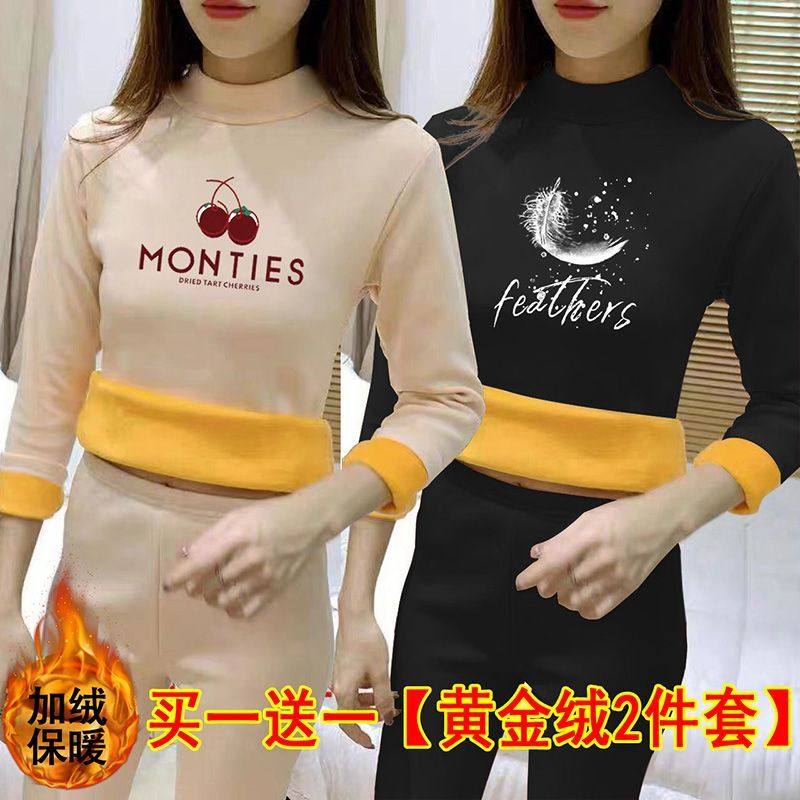 加绒加厚女士保暖内衣套装秋冬款黄金绒打底衫半高领秋衣秋裤上衣
