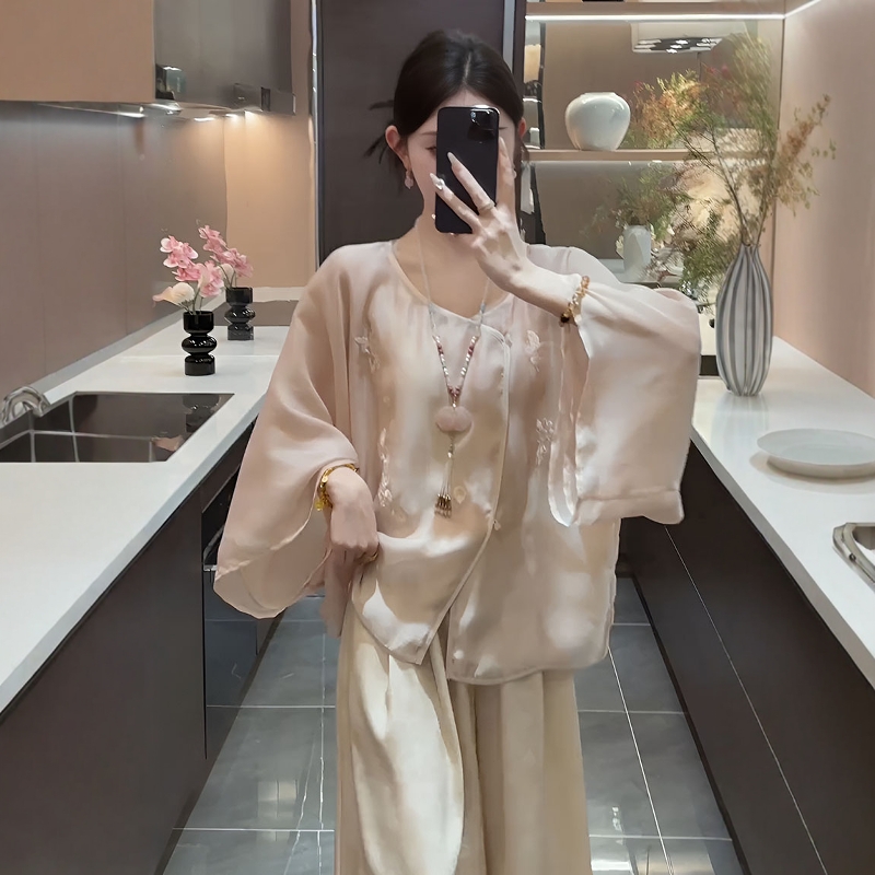 新中式国风提花粉色衬衫女2025年春秋新款独特超好看斜襟盘扣上衣