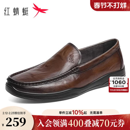 红蜻蜓男士休闲皮鞋新款一脚蹬男鞋豆豆鞋商务舒适真皮软底爸爸鞋