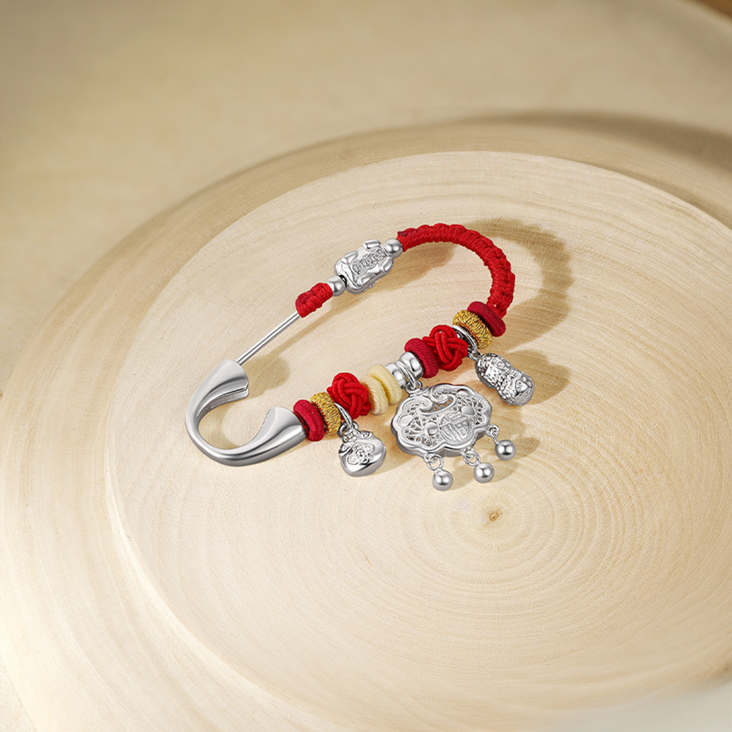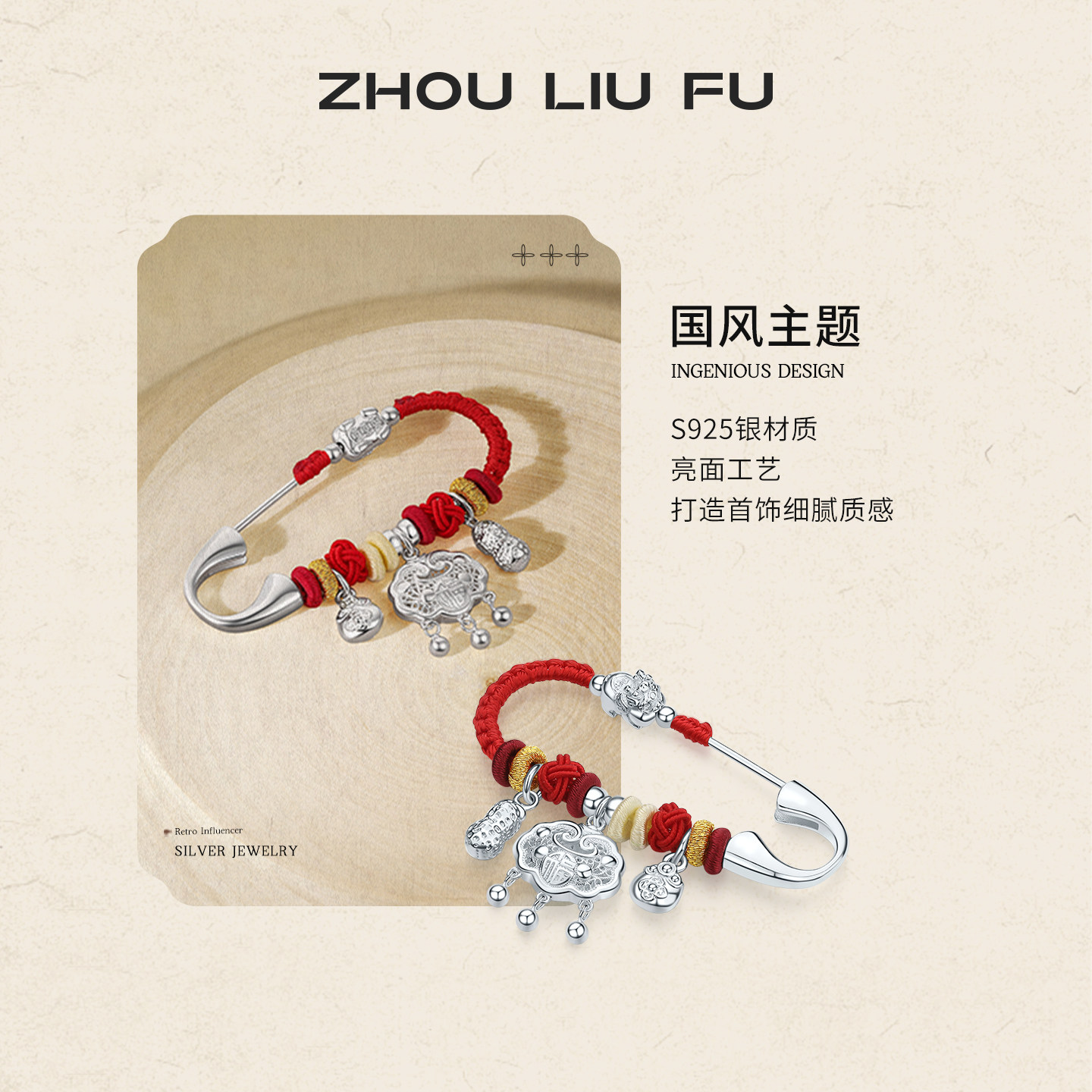 周六福吉祥福锁胸针宝宝款国风平安锁银饰S925银设计感送宝宝礼物