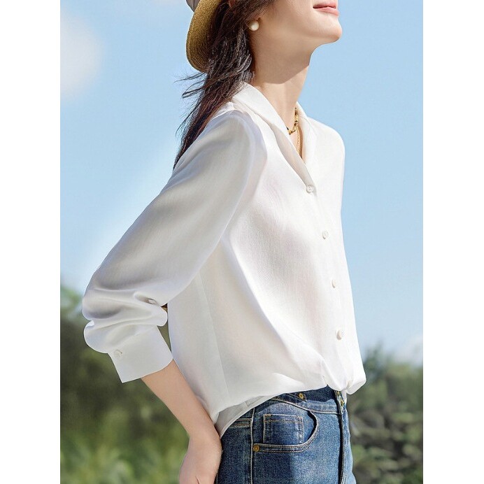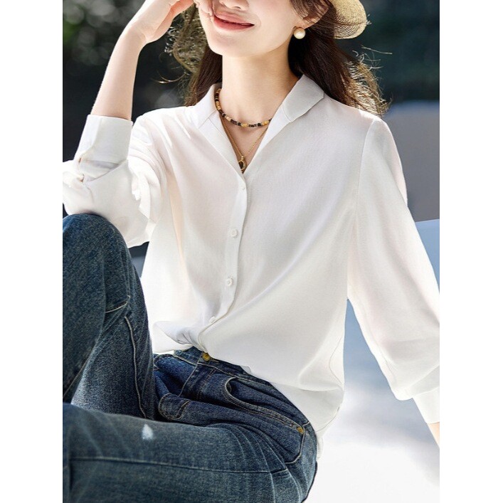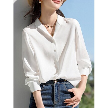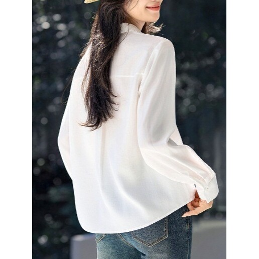 2026春秋新款简约气质通勤小众长袖上衣韩版时尚高级感白色衬衫潮