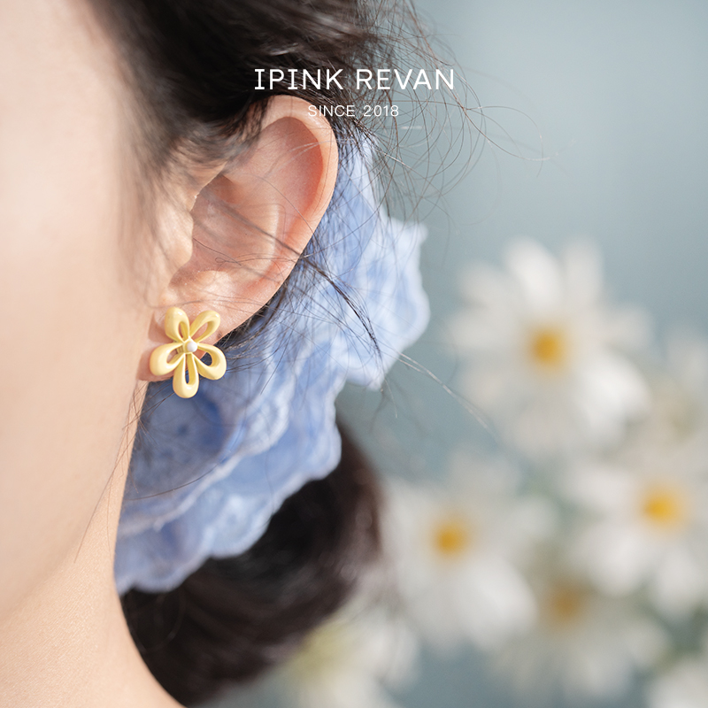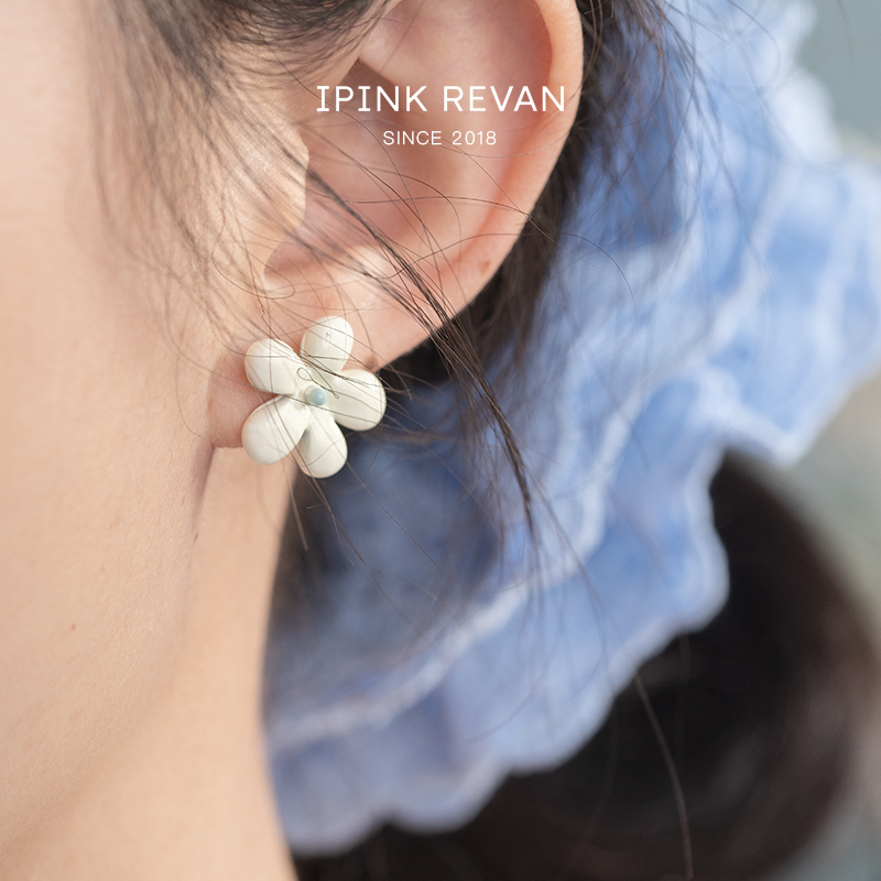IPINK小清新撞色小花耳钉无耳洞耳夹精致甜美不对称少女心耳环女