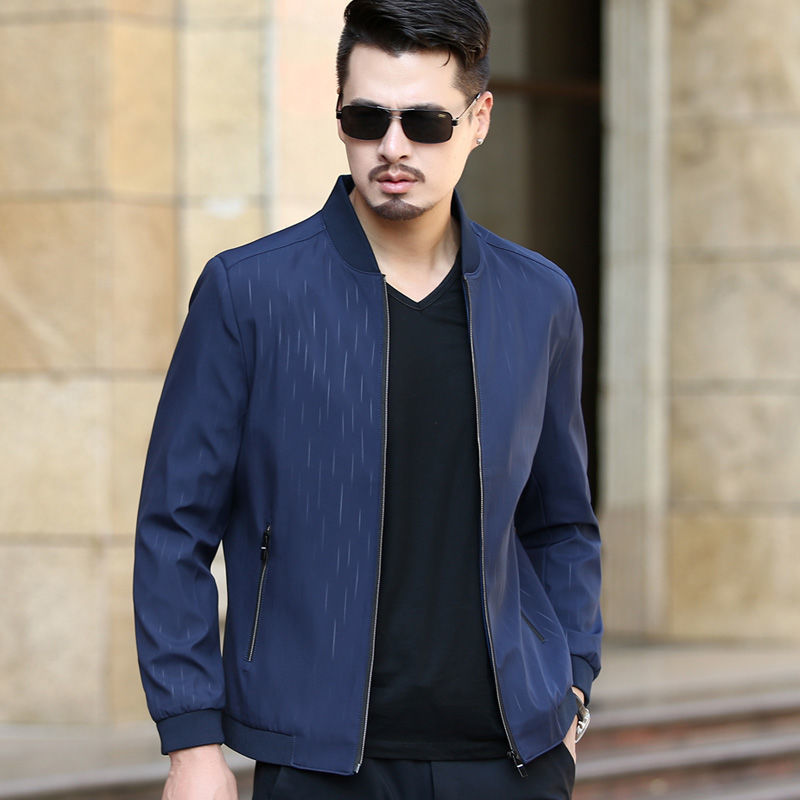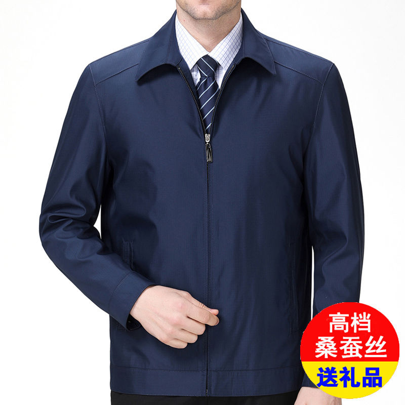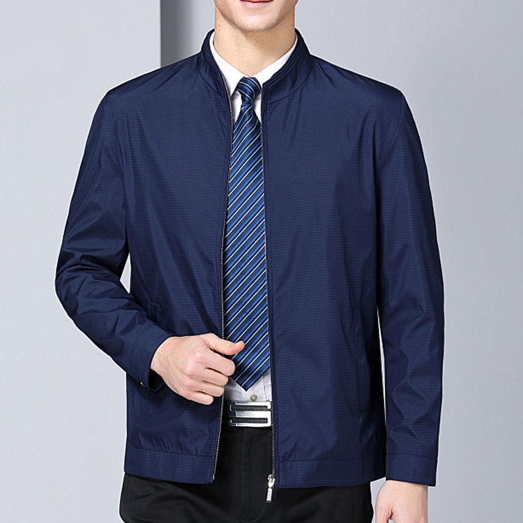 爸爸春秋装外套男中年夹克衫商务休闲立领长袖薄款免烫上衣茄克