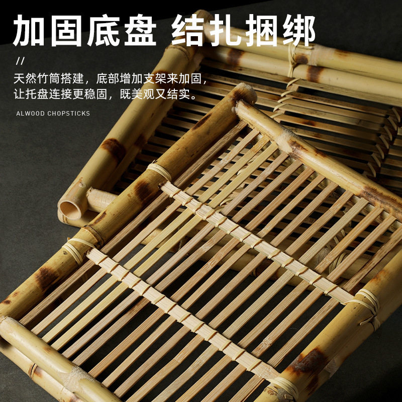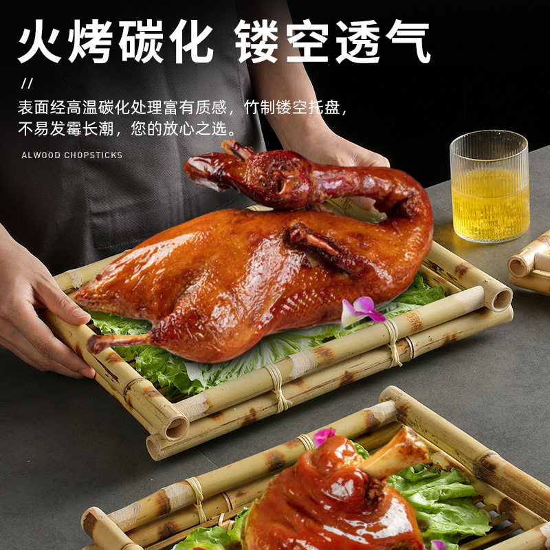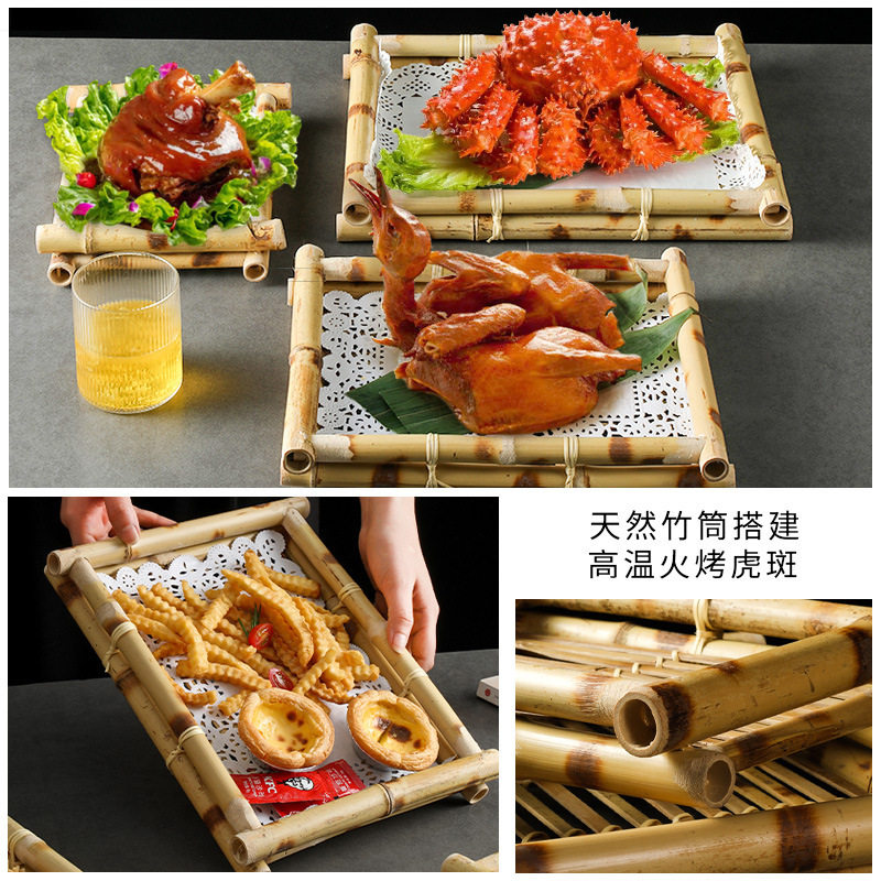 创意餐具竹编托盘长方形酥肉盘子乳鸽盘火锅配菜盘油炸网红小吃盘