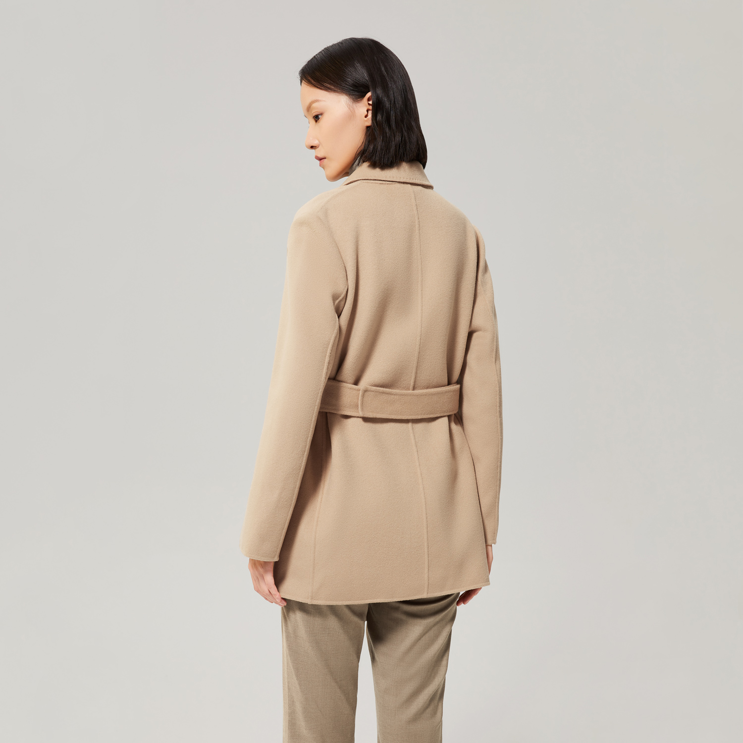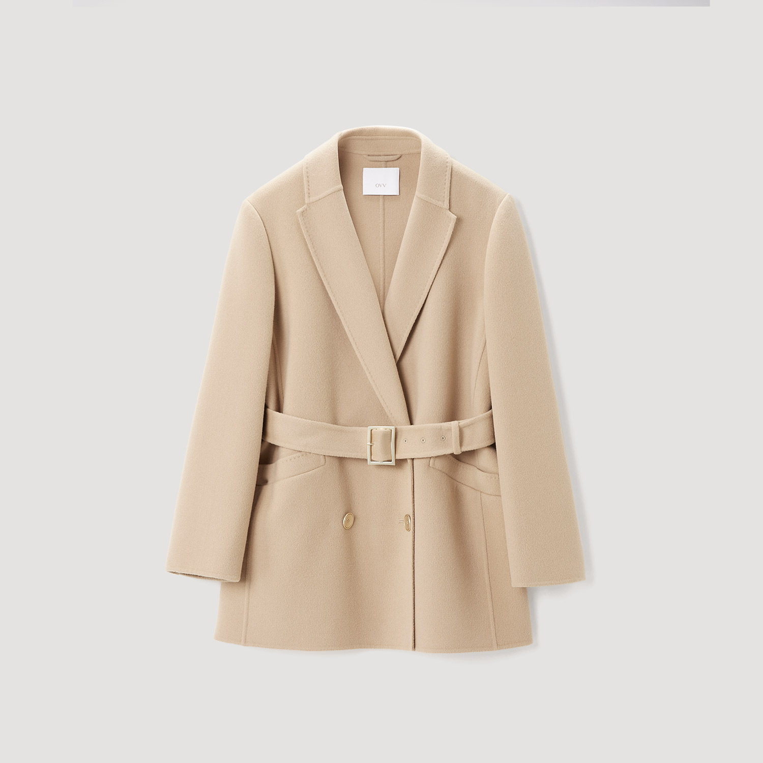OVVOutlet秋冬女装宽松西装式随附腰带精致短款羊毛大衣